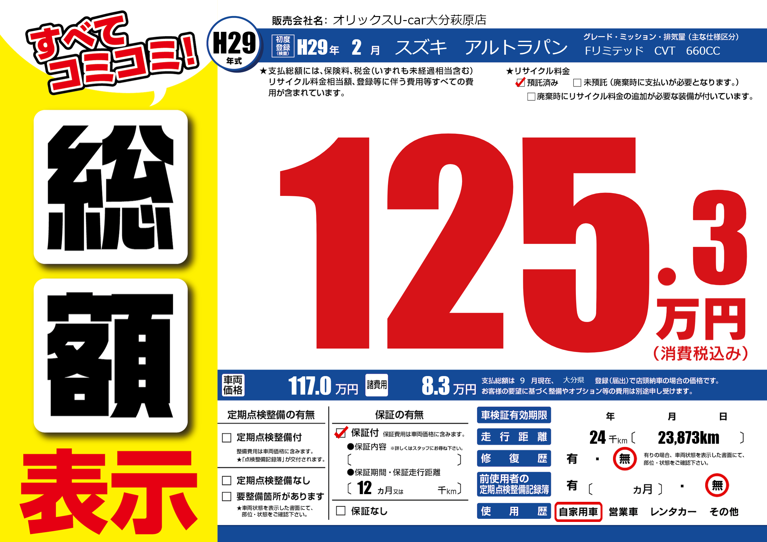 | 車名 | スズキ アルトラパン | グレード ミッション 排気量 |