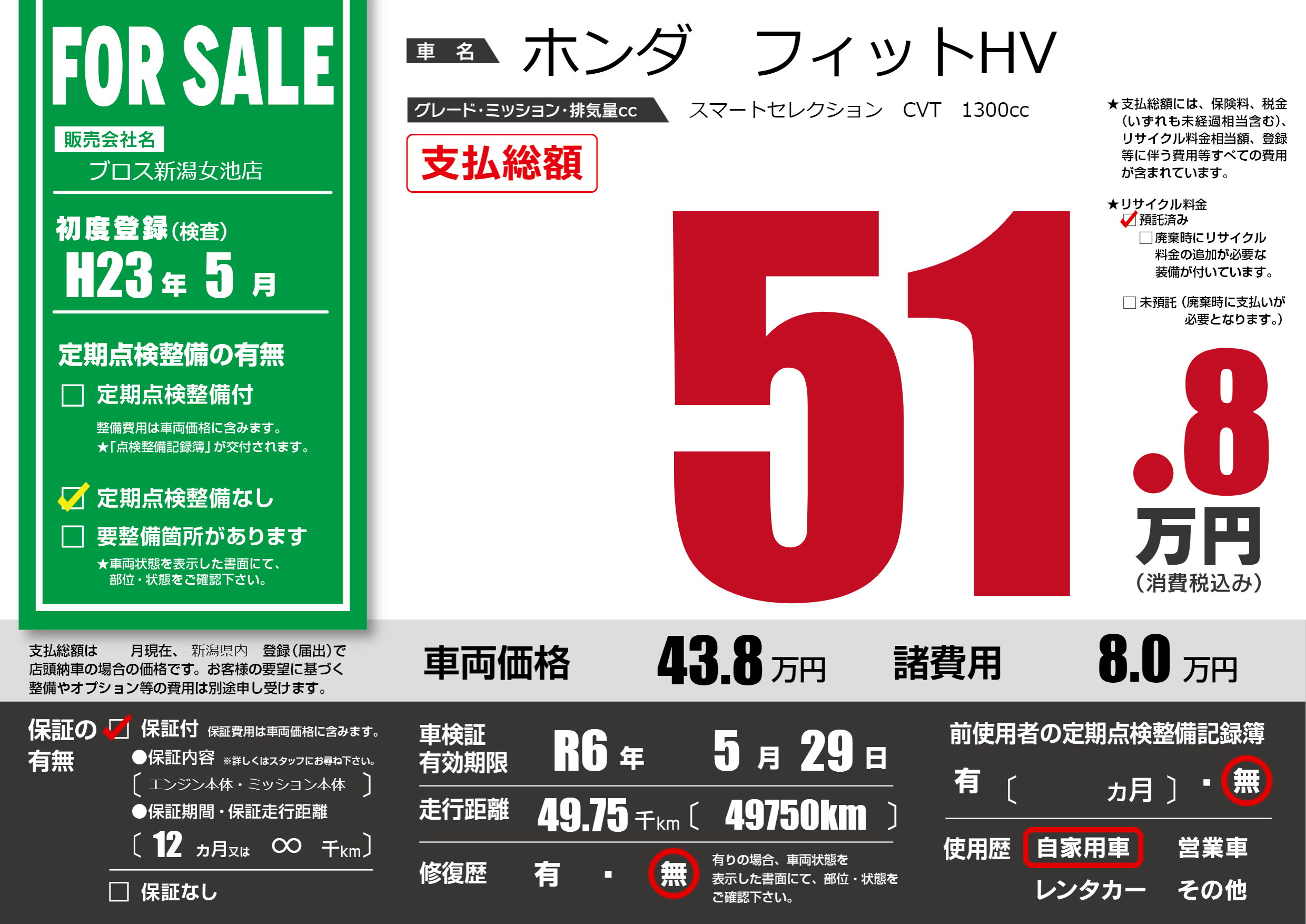| 走行キロ | 4.9万km | 初年度登録 | H23年5月 |