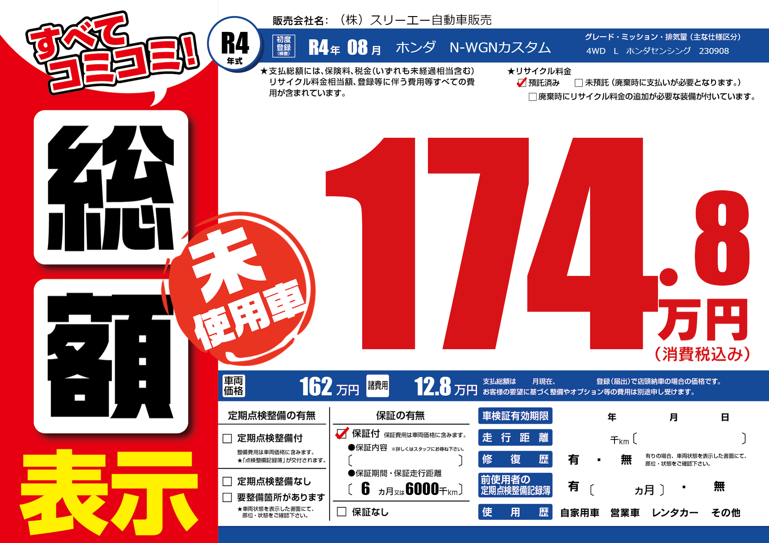 保証付き 保証内容(---) 6ヶ月または(6000)千kmまで |
