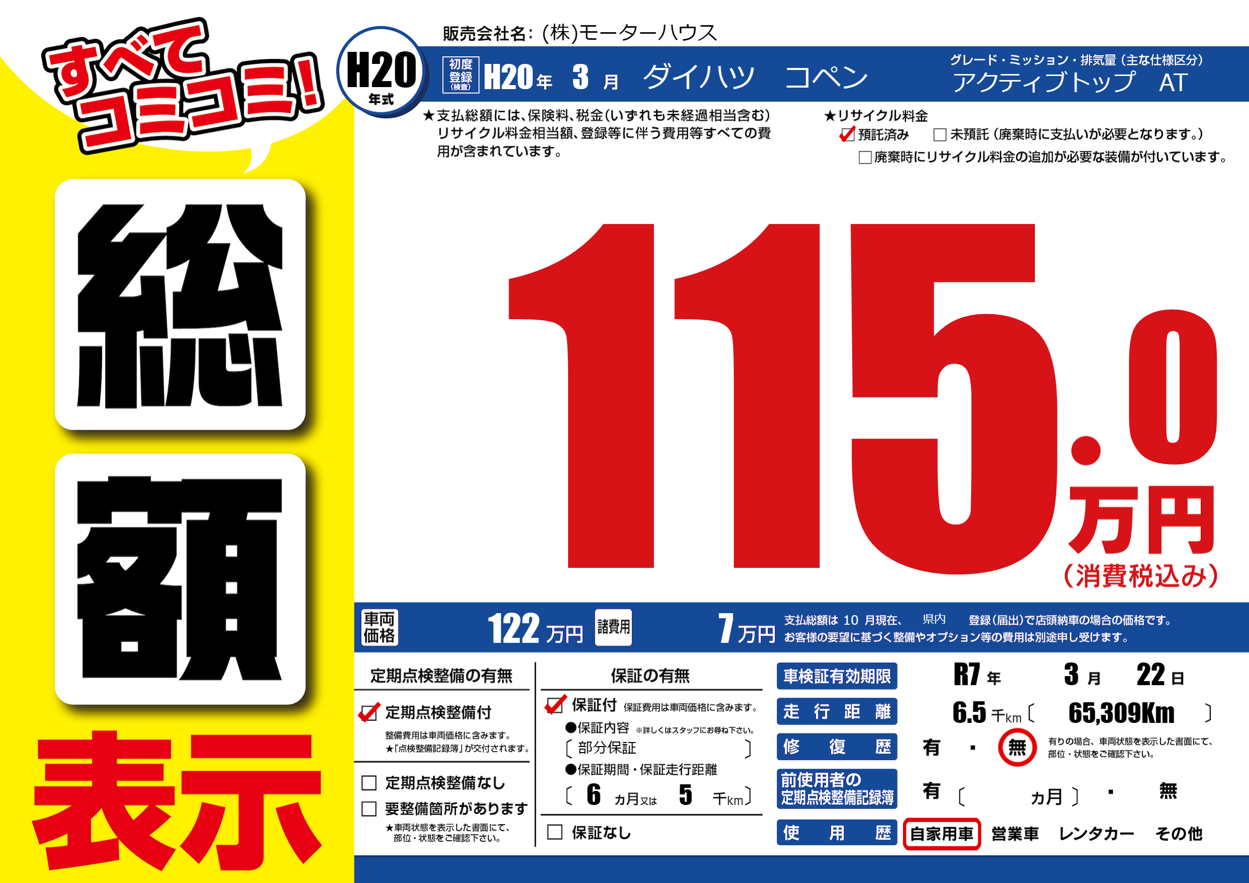 | 車検制限 | R7年 3月 22日 | ||