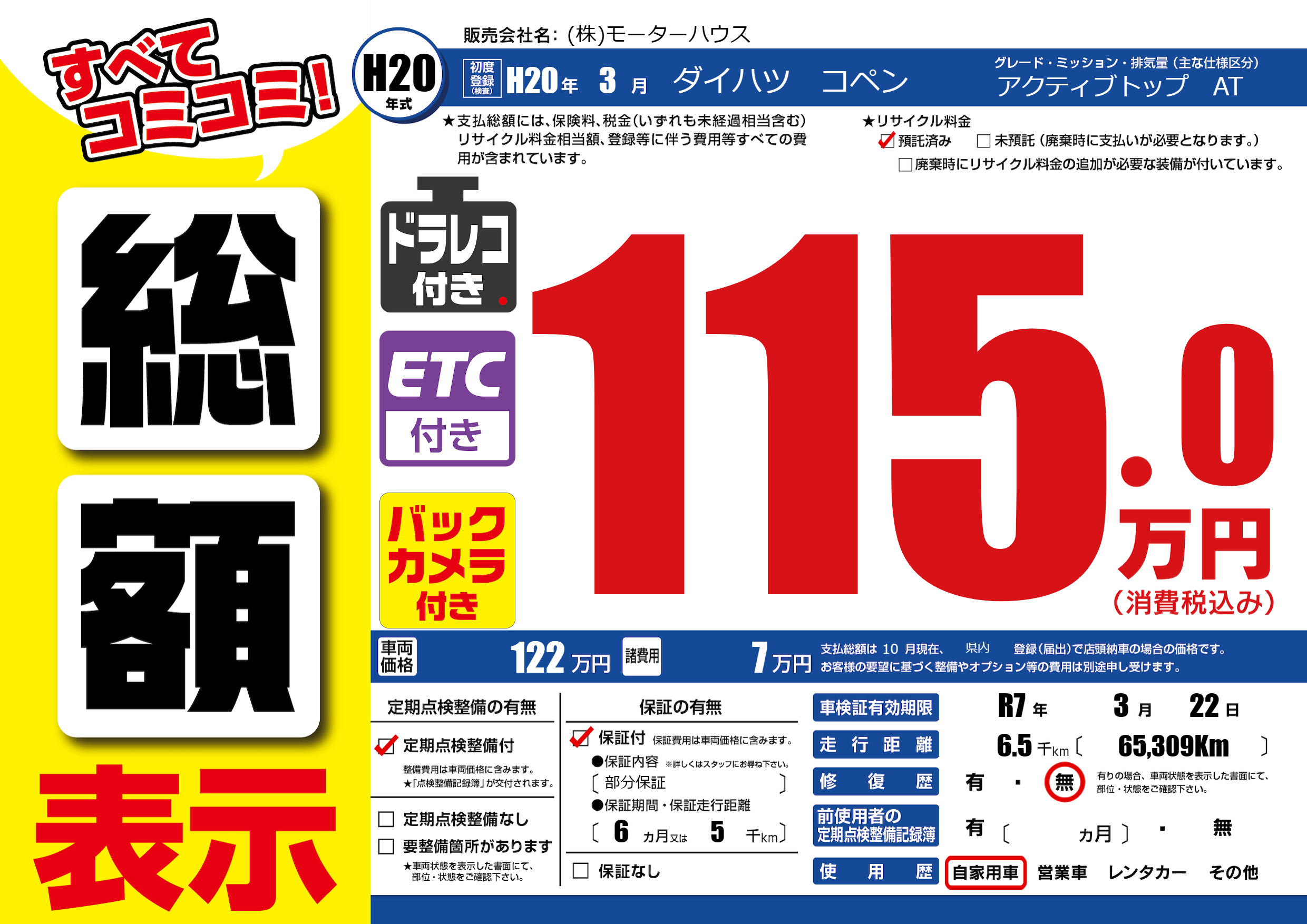 | 車検制限 | R7年 3月 22日 | ||