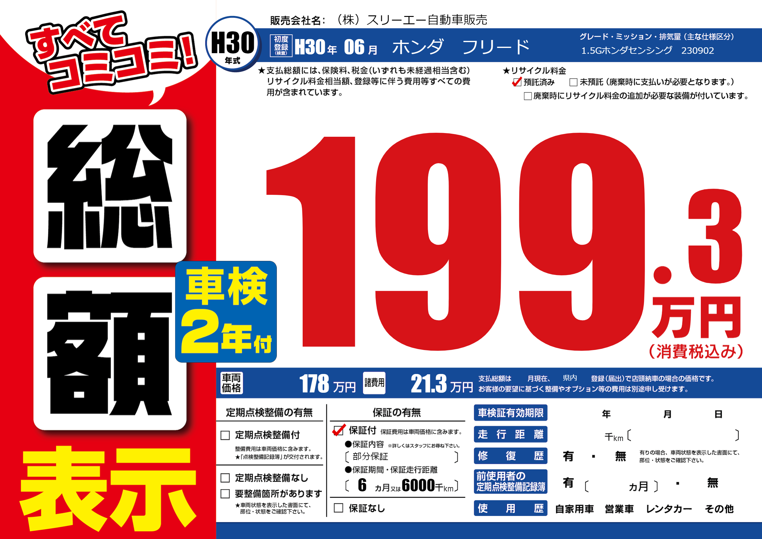 | 車名 | ホンダ フリード | グレード ミッション 排気量 |