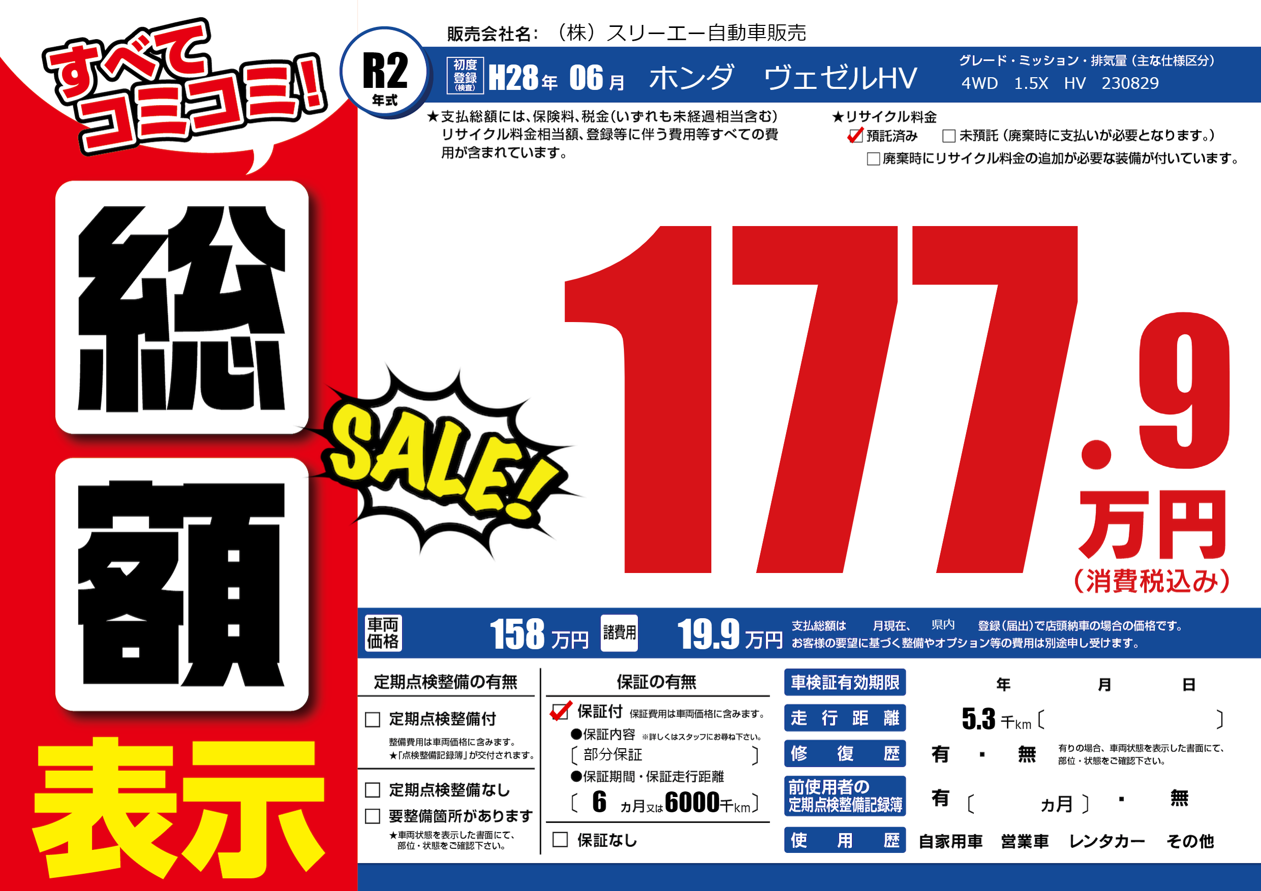 保証付き 保証内容(部分保証) 6ヶ月または(6000)千kmまで |