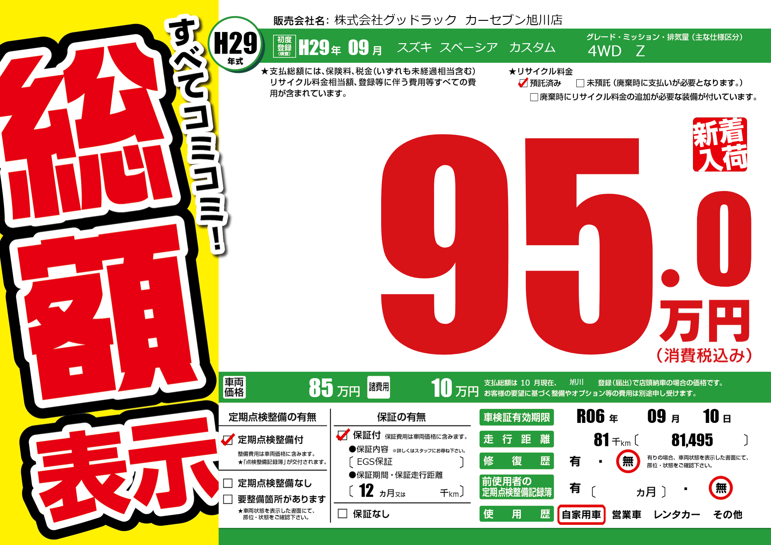 | 走行キロ | 8.1万km | 初年度登録 | H29年09月 |