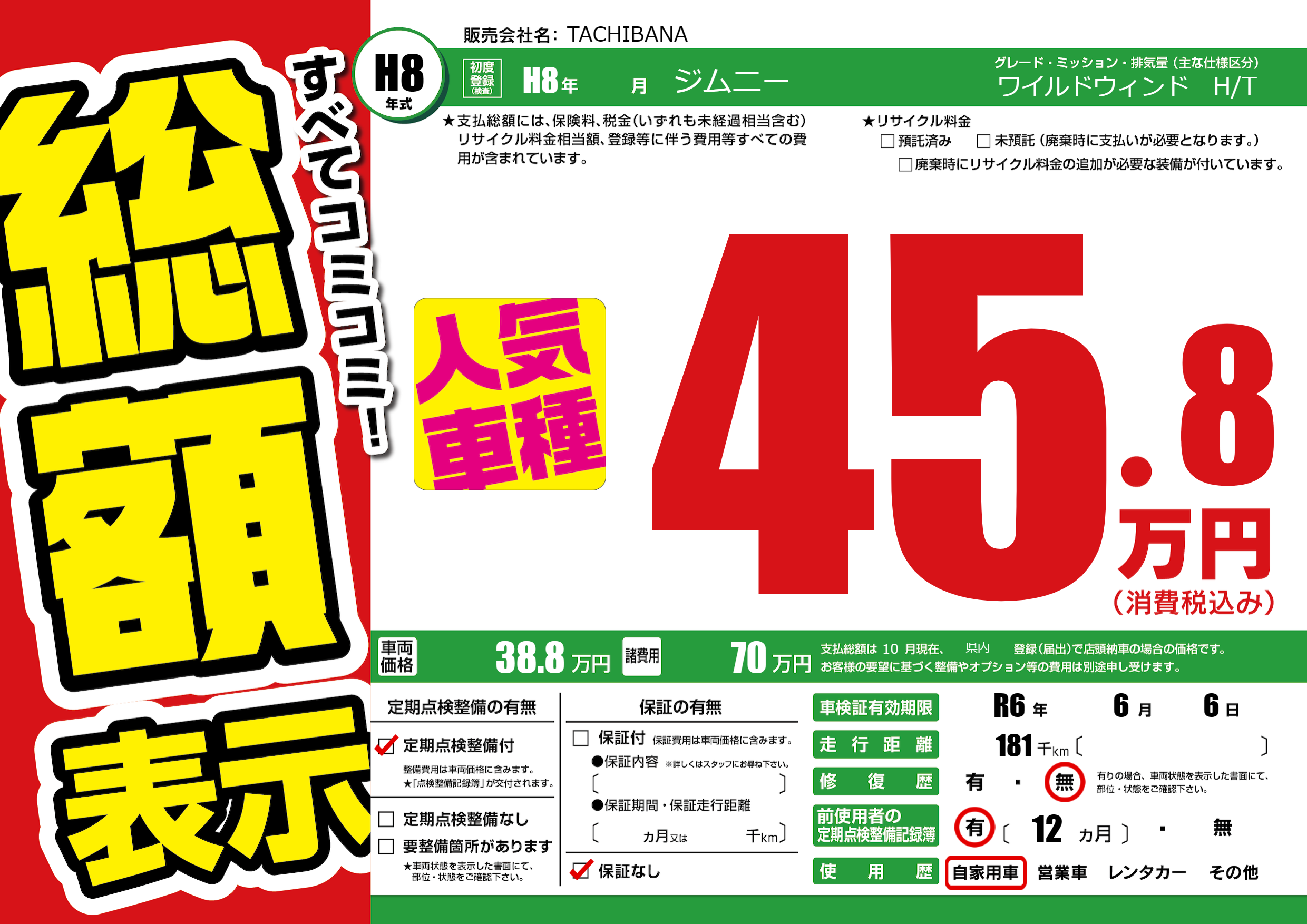 | 車名 | ジムニー | グレード ミッション 排気量 |