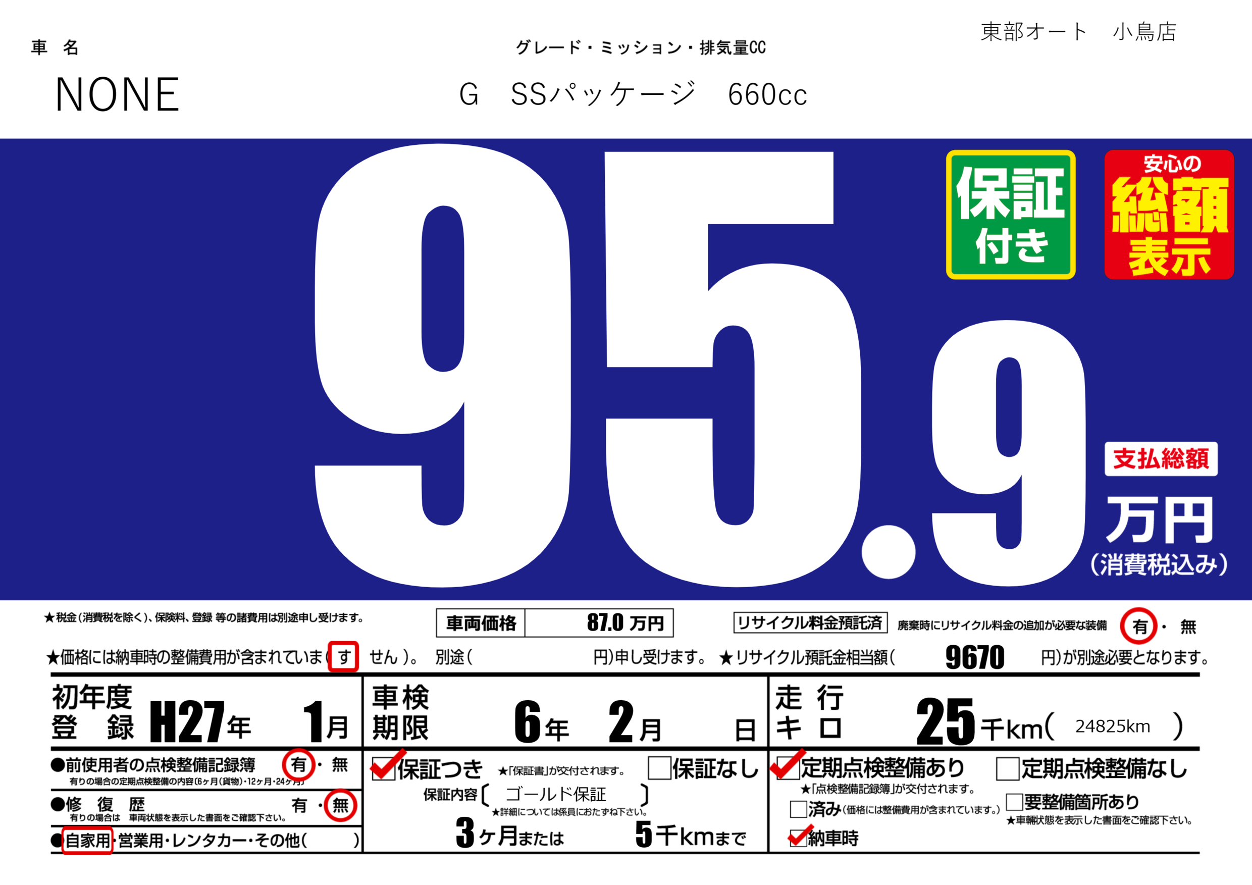 保証付き 保証内容( ゴールド保証) 3ヶ月または(5)千kmまで |