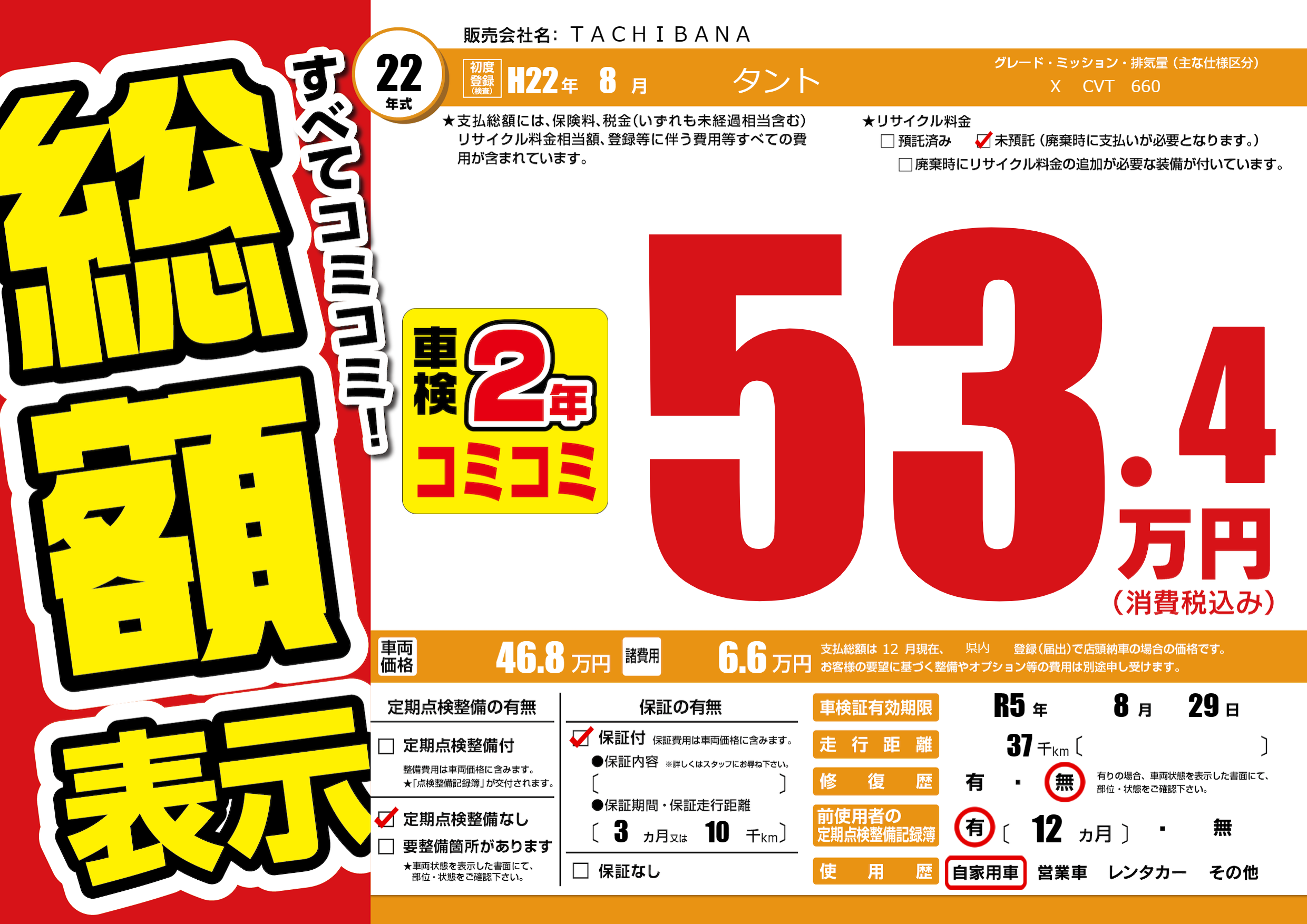 | 初年度登録 | H22年8月 | ||