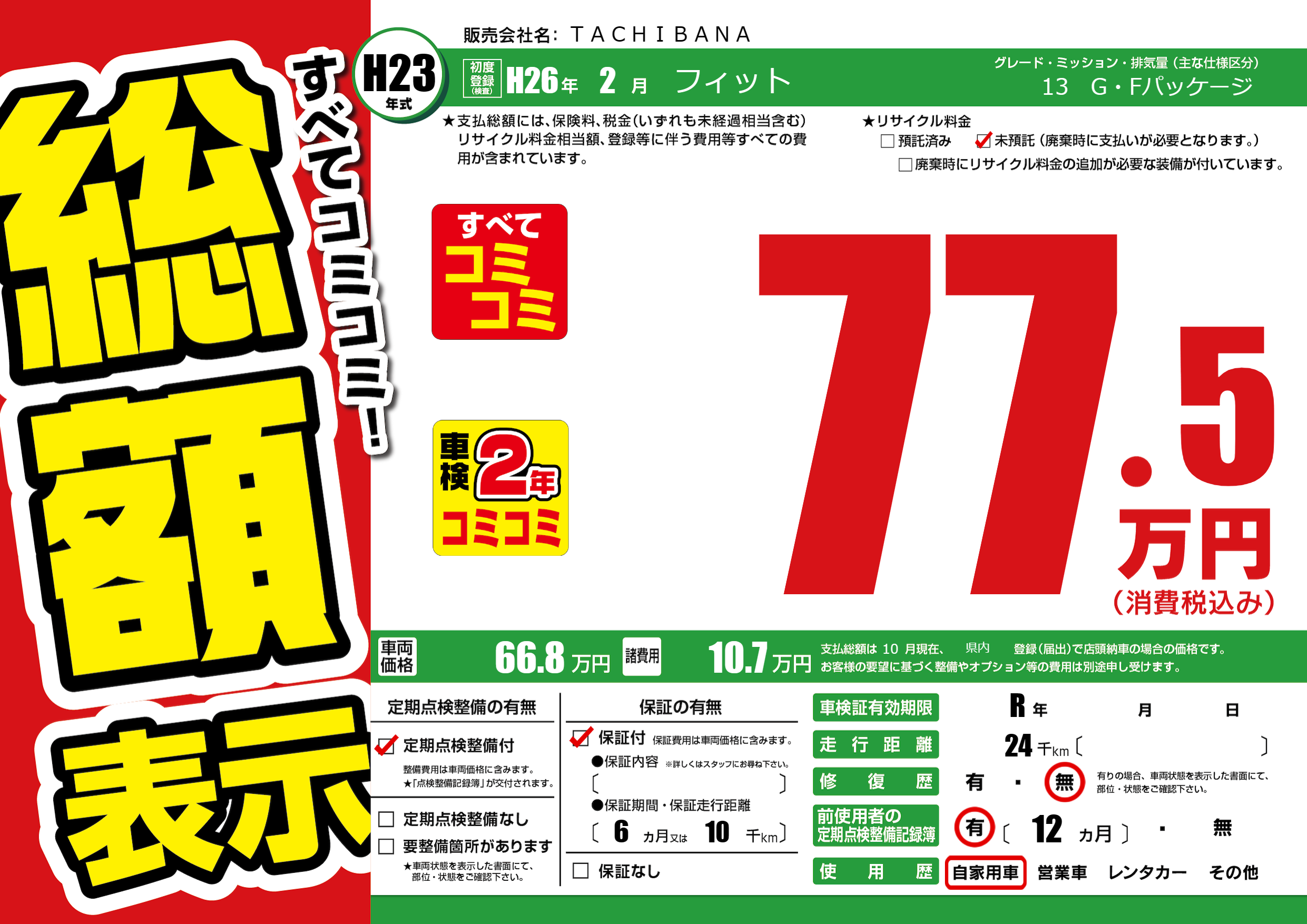 | 走行キロ | 2.4万km | 初年度登録 | H26年2月 |