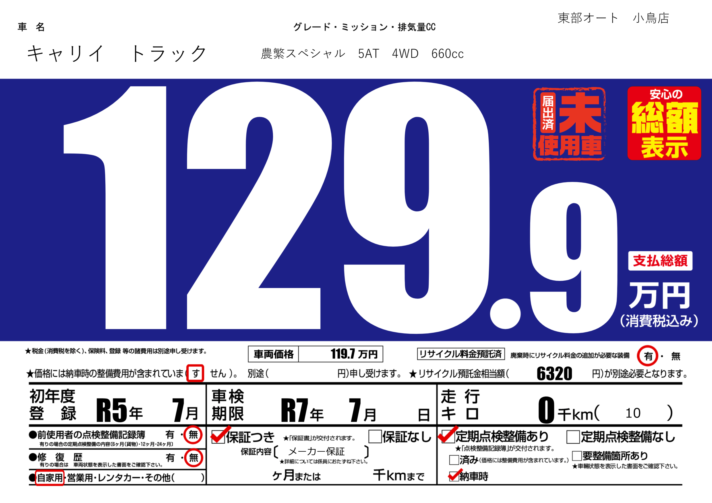 | 車検制限 | R7年 7月 - 日 | ||