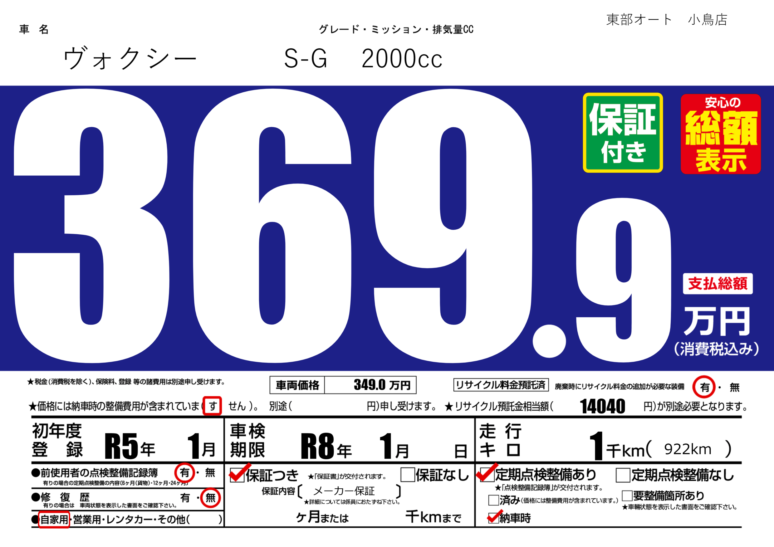 保証付き 保証内容( メーカー保証) ---ヶ月または()千kmまで |