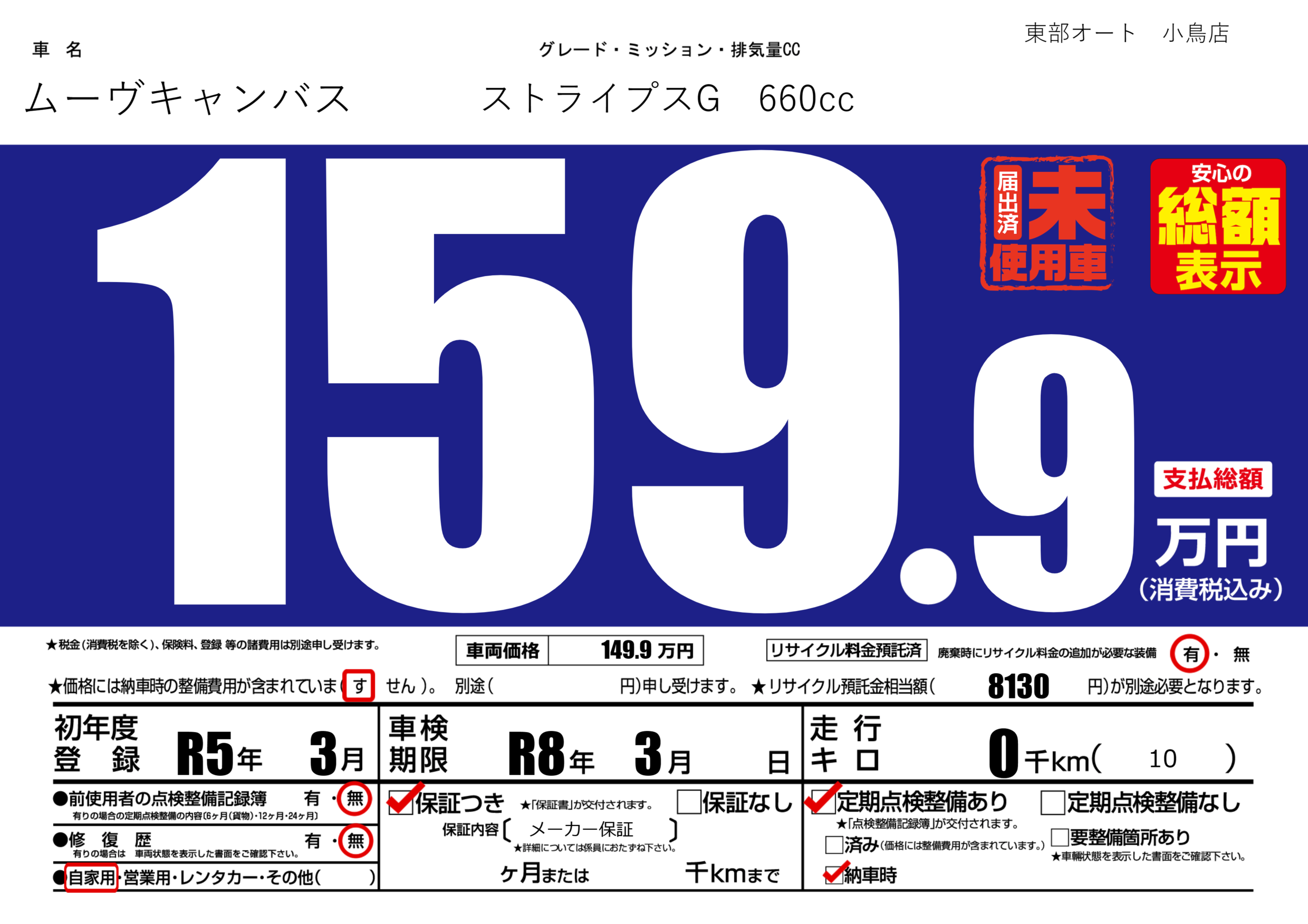 | 車検制限 | R8年 3月 - 日 | ||