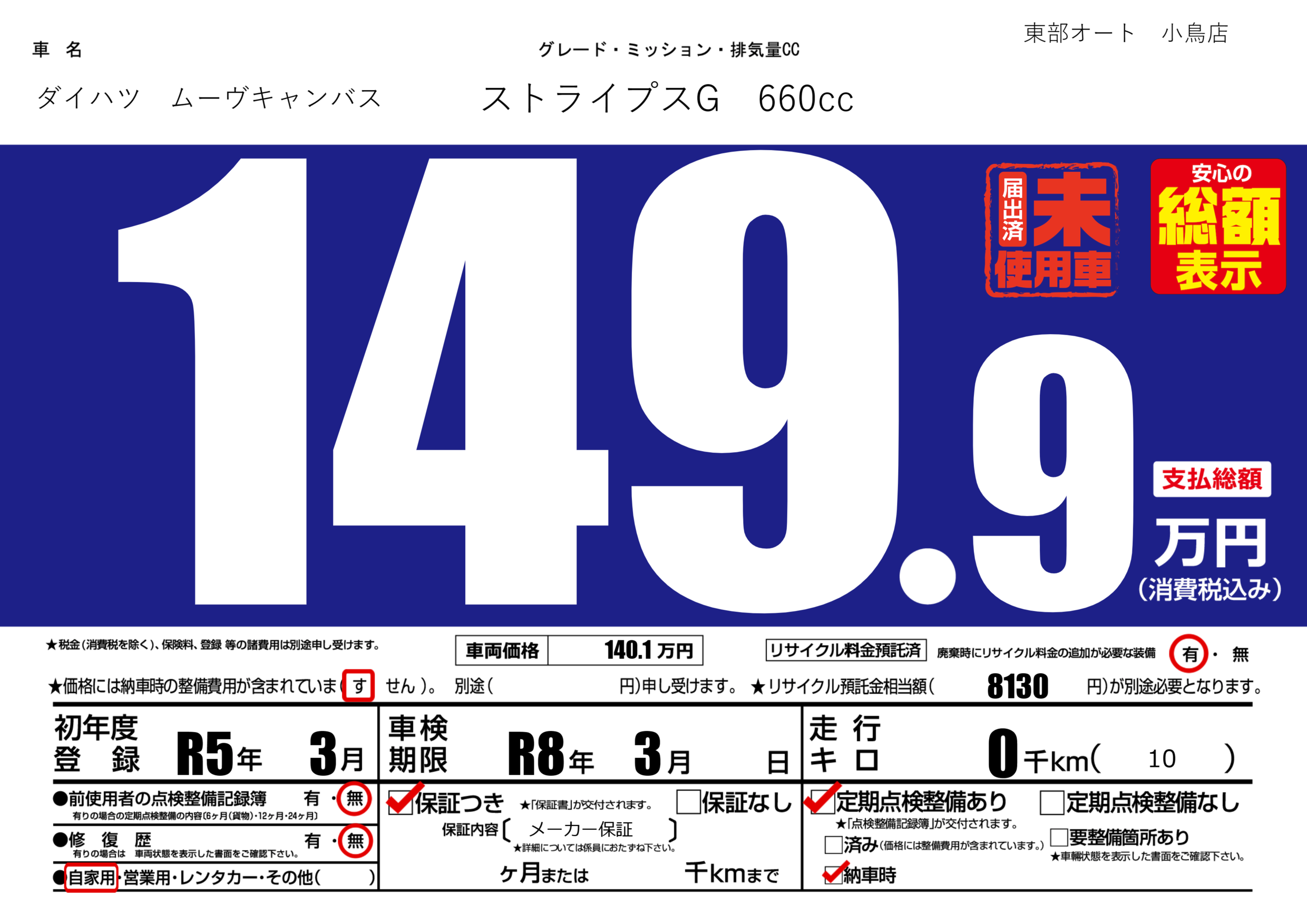| 車検制限 | R8年 3月 - 日 | ||