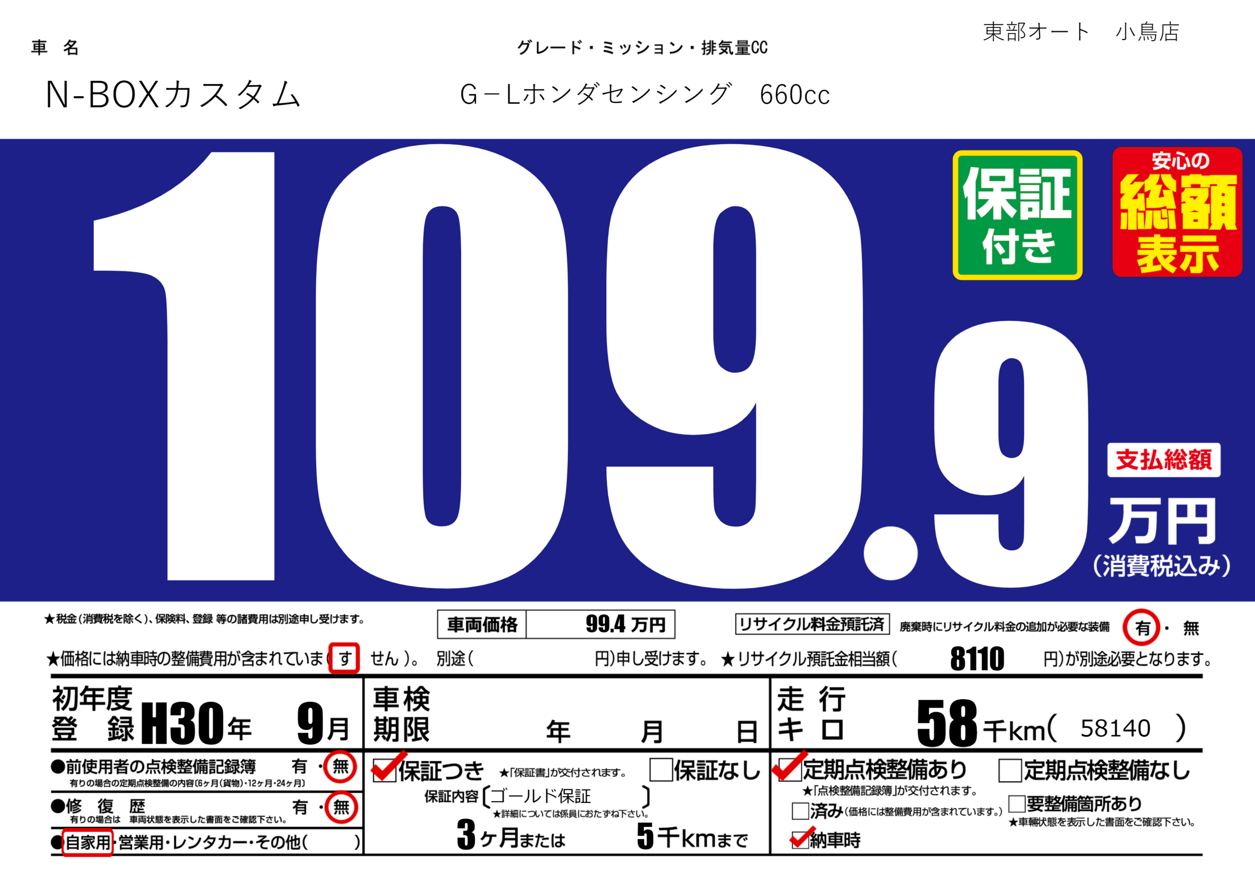 保証付き 保証内容(ゴールド保証 ) 3ヶ月または(5)千kmまで |