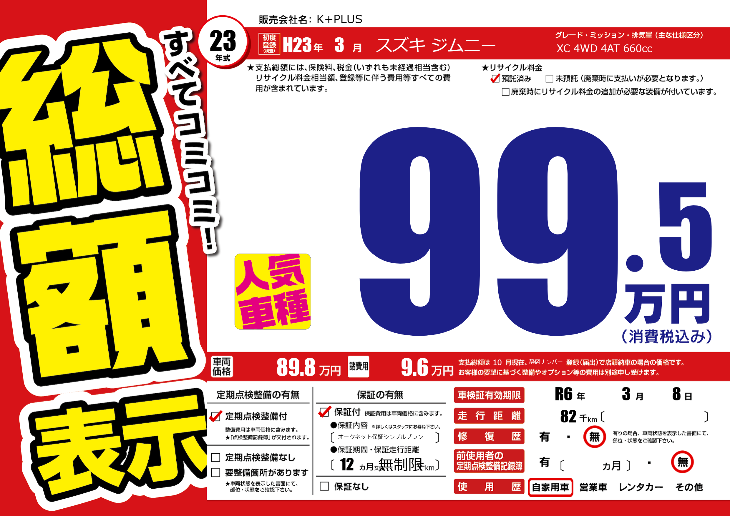 | 車名 | スズキ ジムニー | グレード ミッション 排気量 |