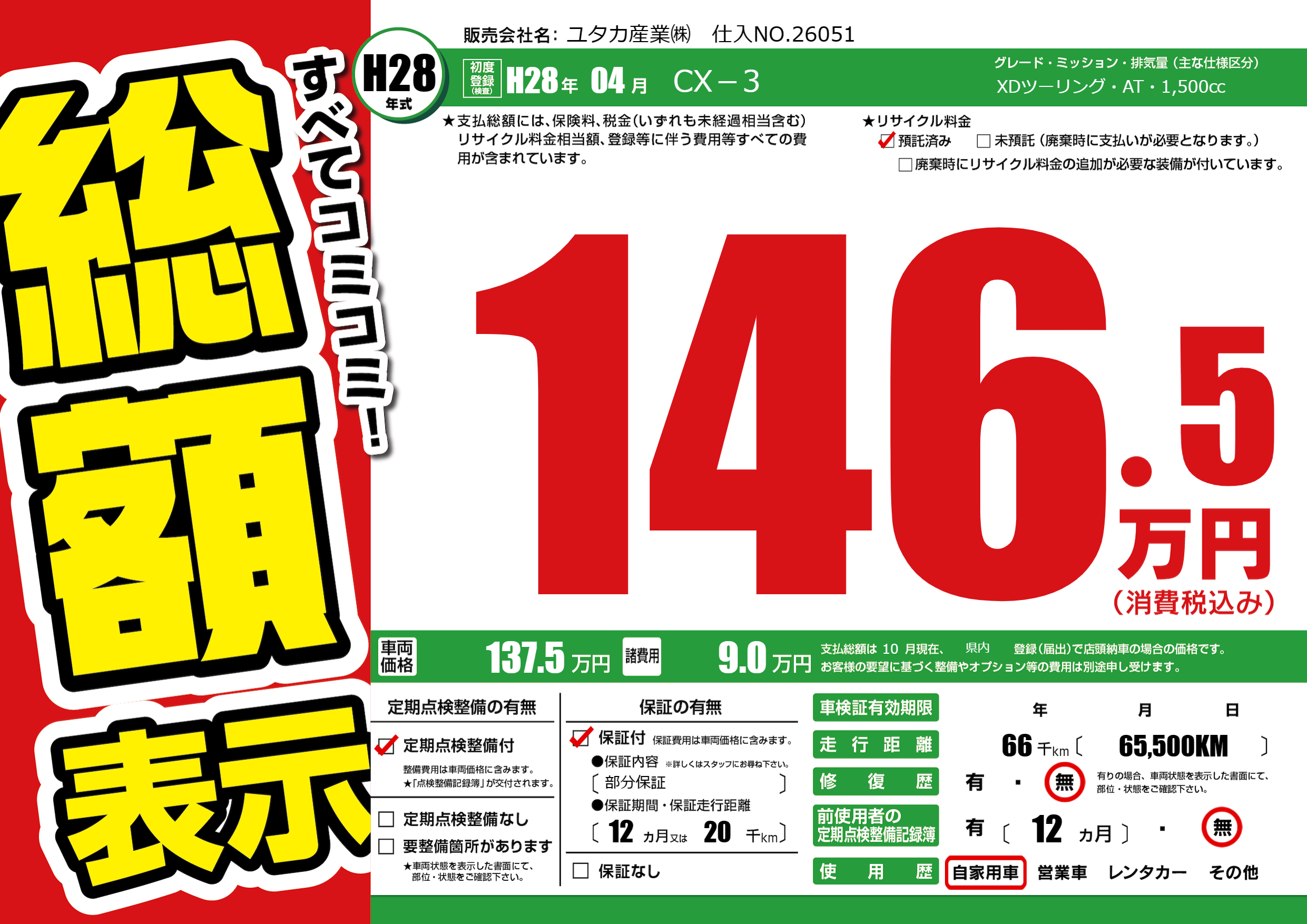 | 車名 | CX-3 | グレード ミッション 排気量 |