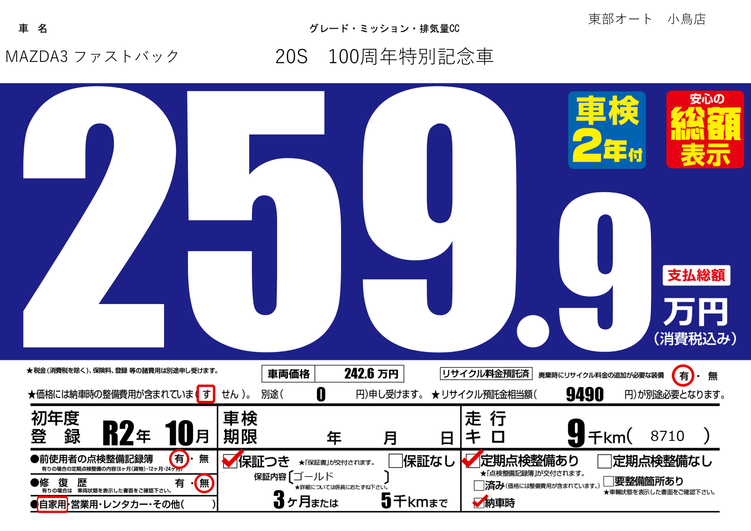 保証付き 保証内容(ゴールド) 3ヶ月または(5)千kmまで |