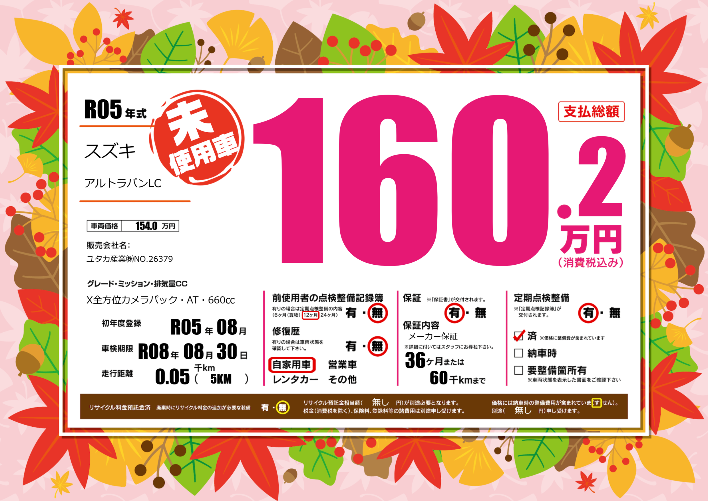 | 走行キロ | - | 初年度登録 | R05年08月 |