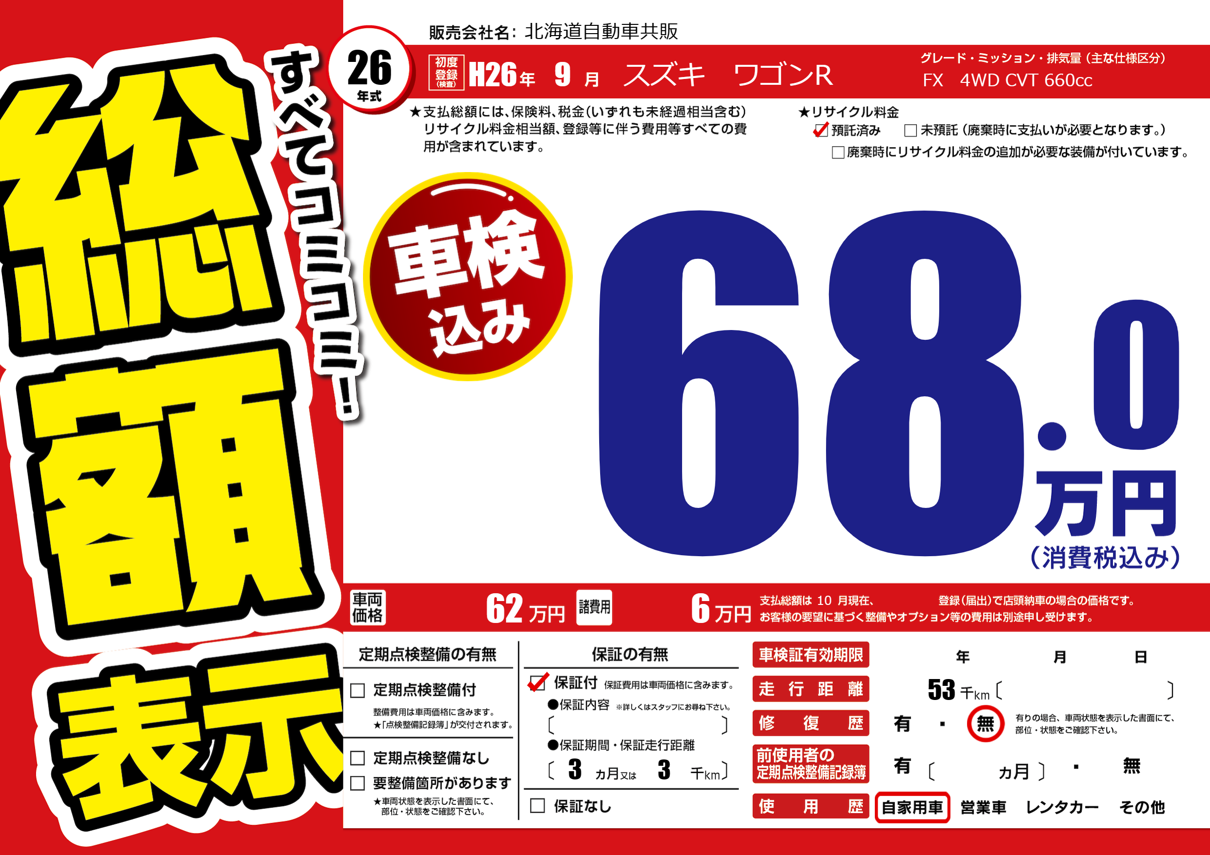 | 車名 | スズキ ワゴンR | グレード ミッション 排気量 |