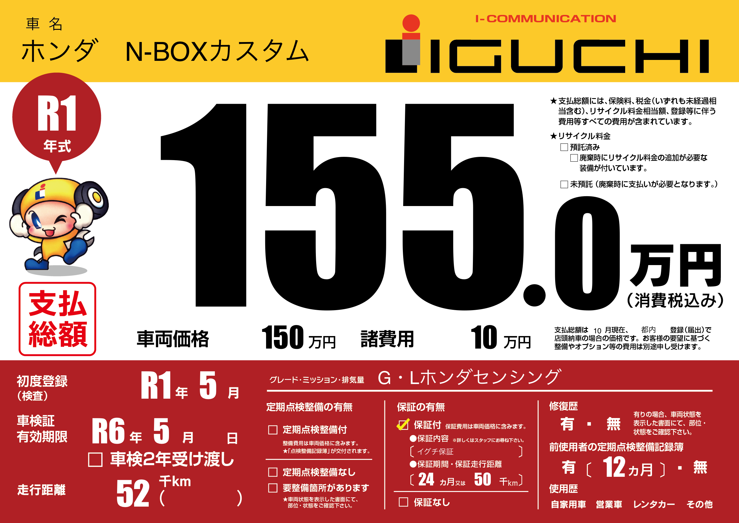 保証付き 保証内容(イグチ保証) 24ヶ月または(50)千kmまで |