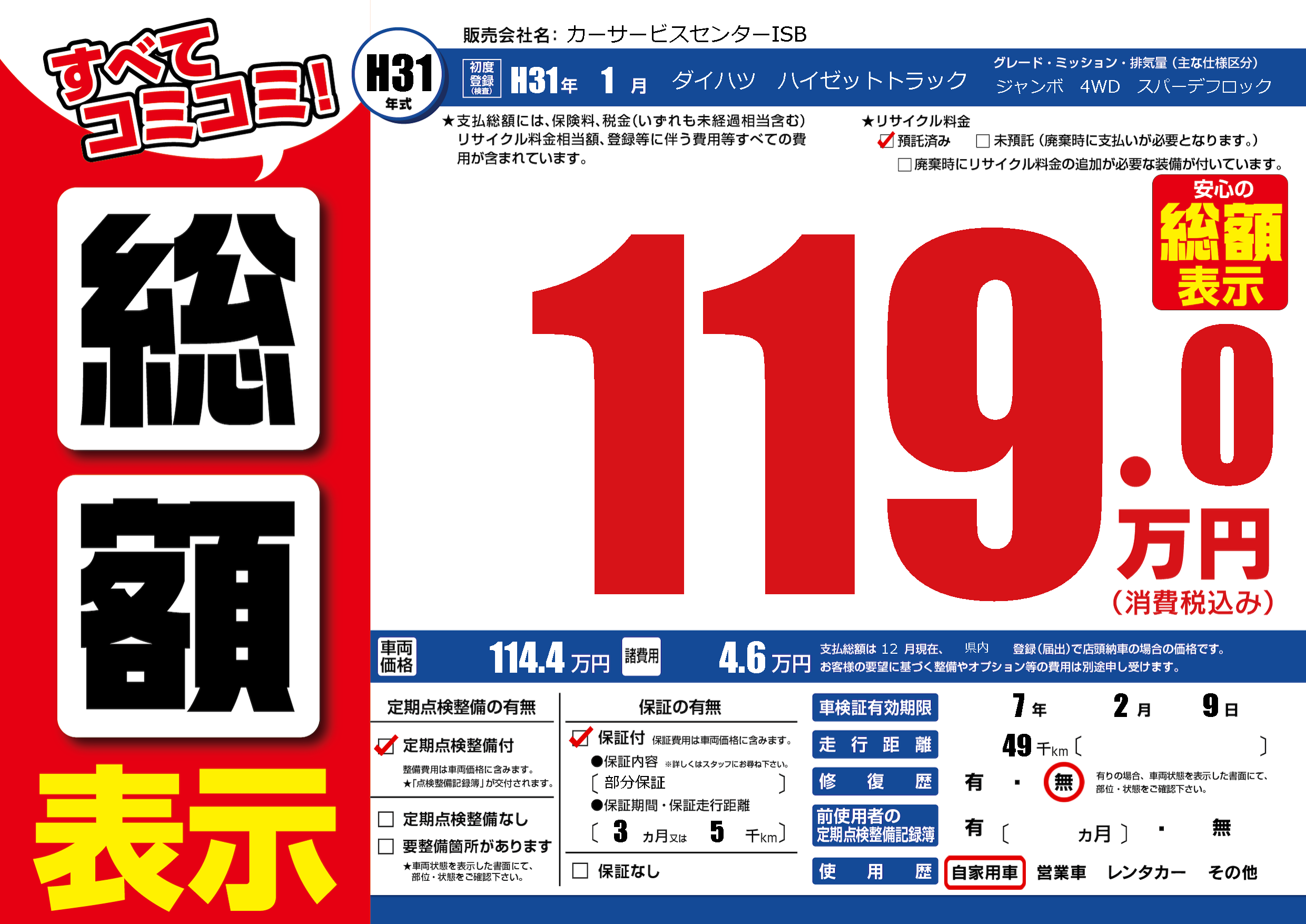 | 定期点検整備 | 定期点検整備あり | ||