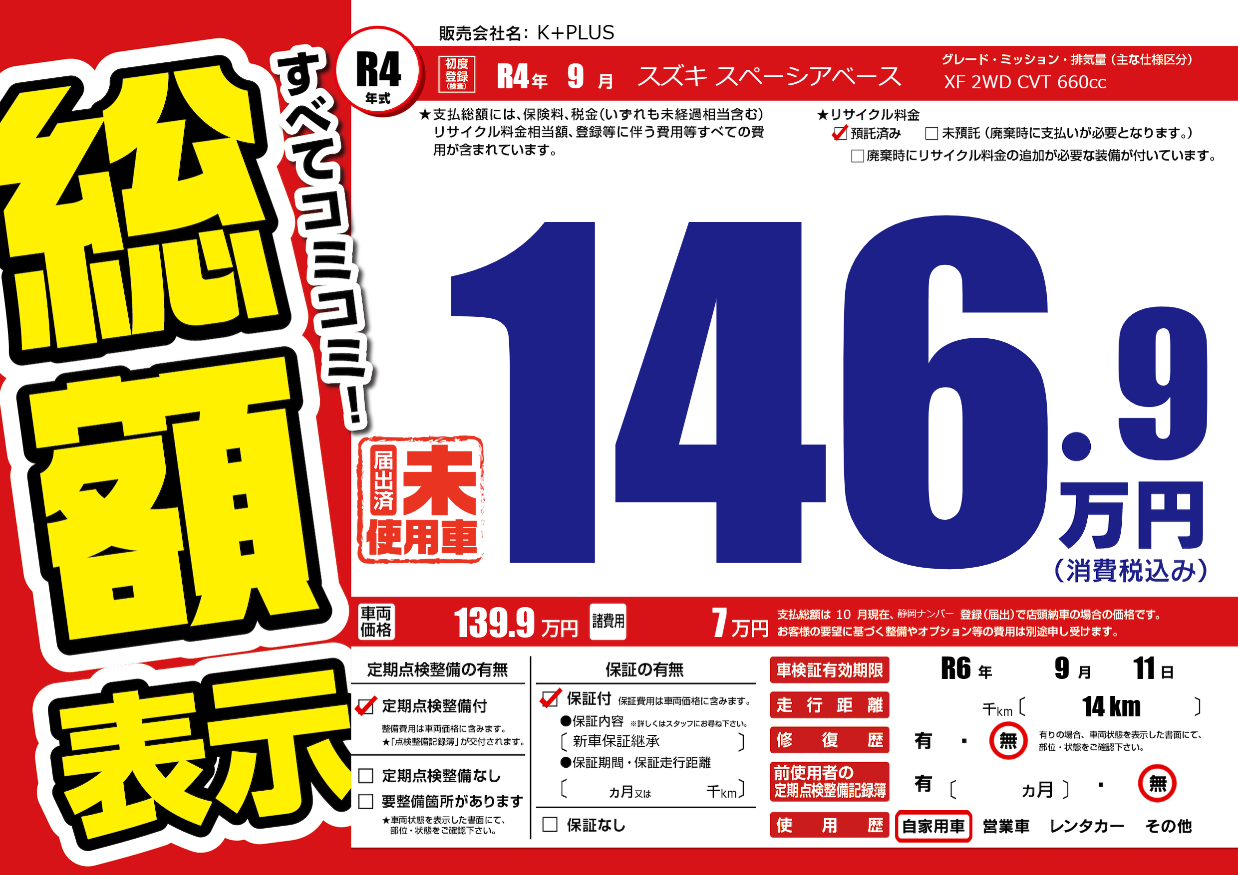 なし | 車検制限 | R6年9月11月 |