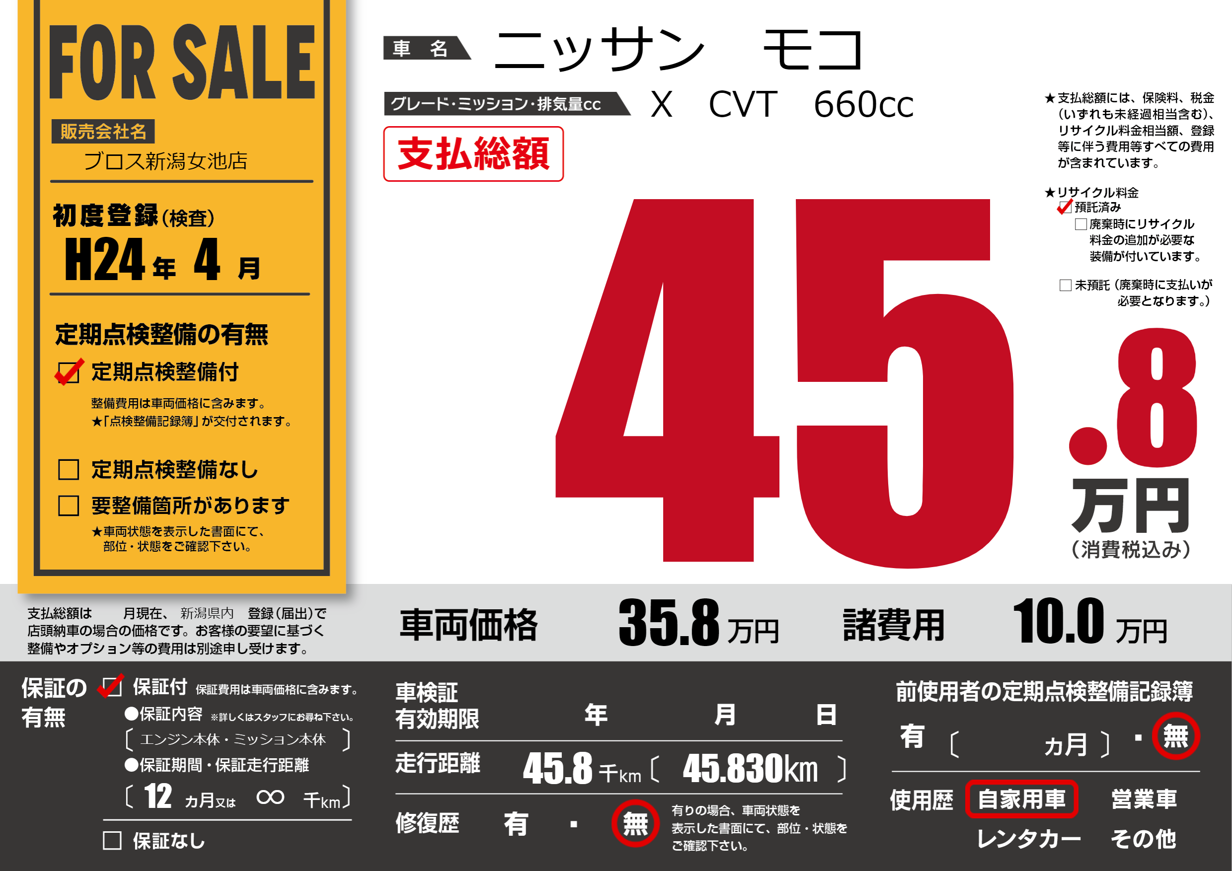 | 車名 | ニッサン モコ | グレード ミッション 排気量 |