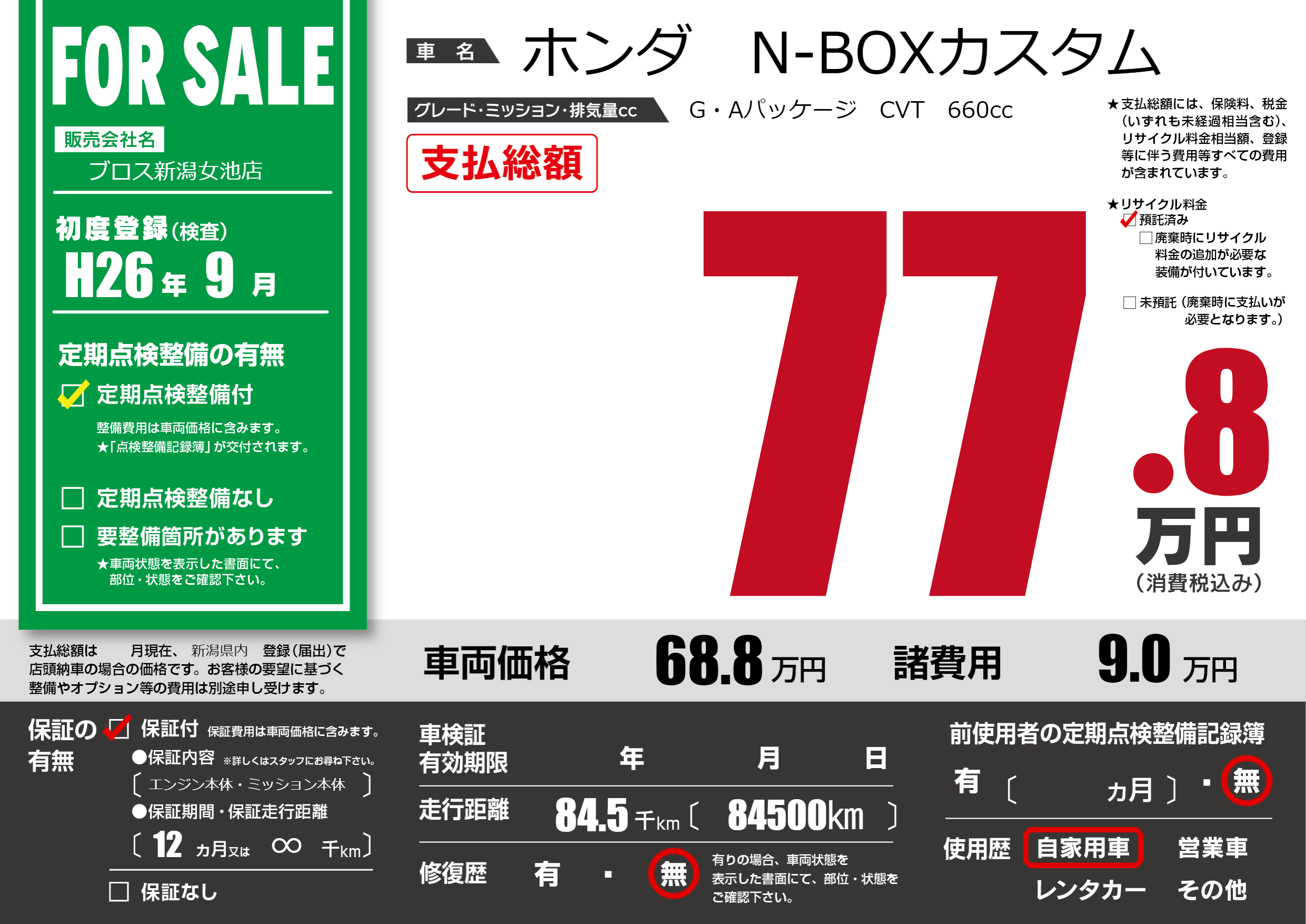 | 走行キロ | 8.4万km | 初年度登録 | H26年9月 |