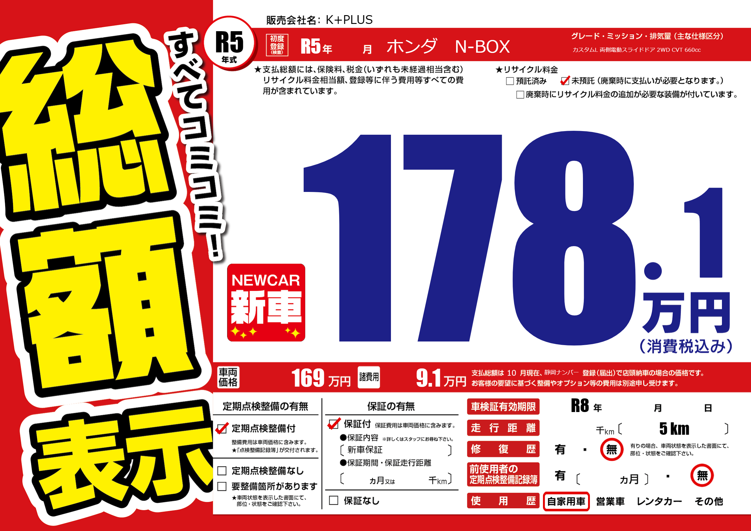 なし | 車検制限 | R8年---月---月 |