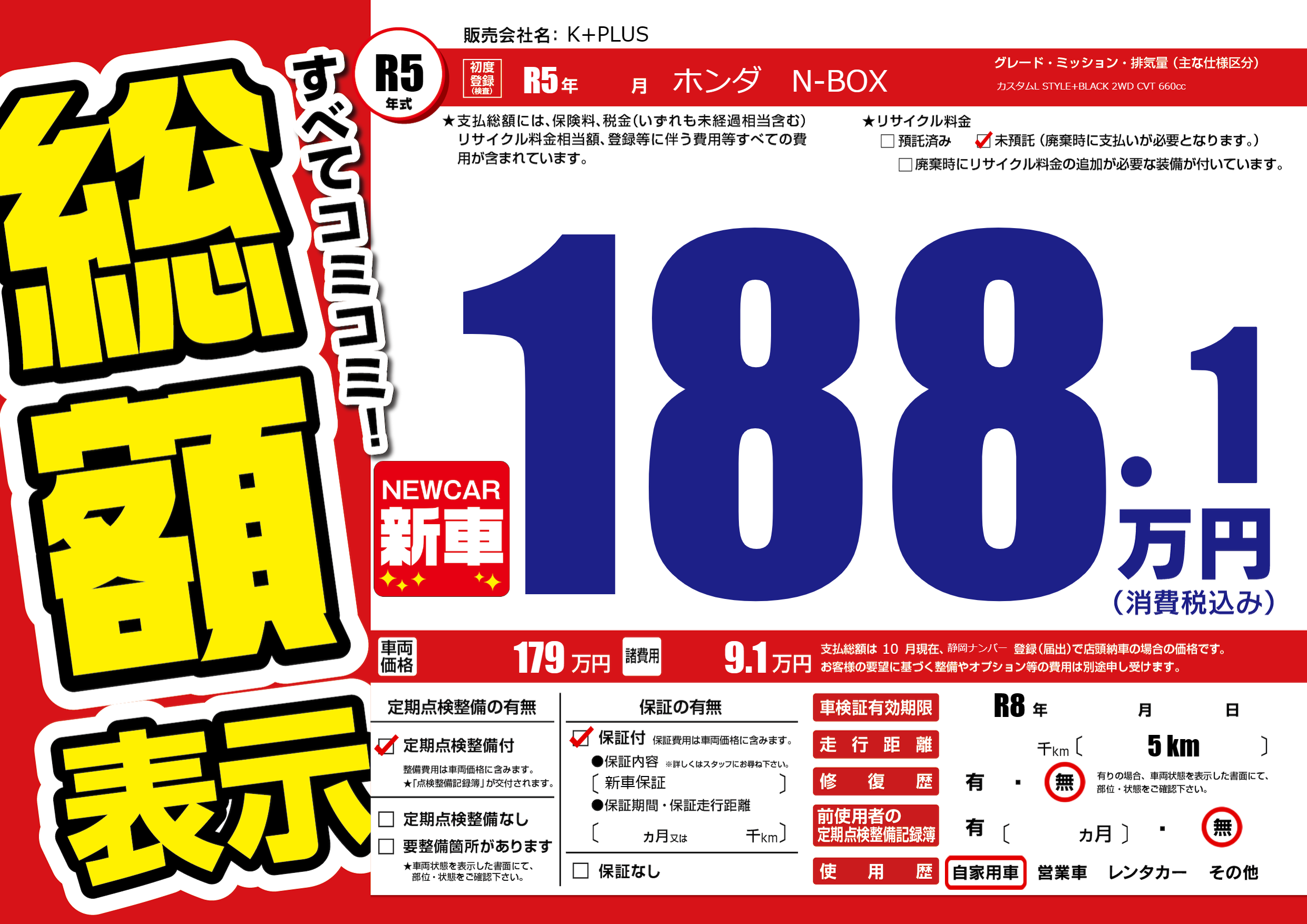| 車名 | ホンダ N-BOX | グレード ミッション 排気量 |