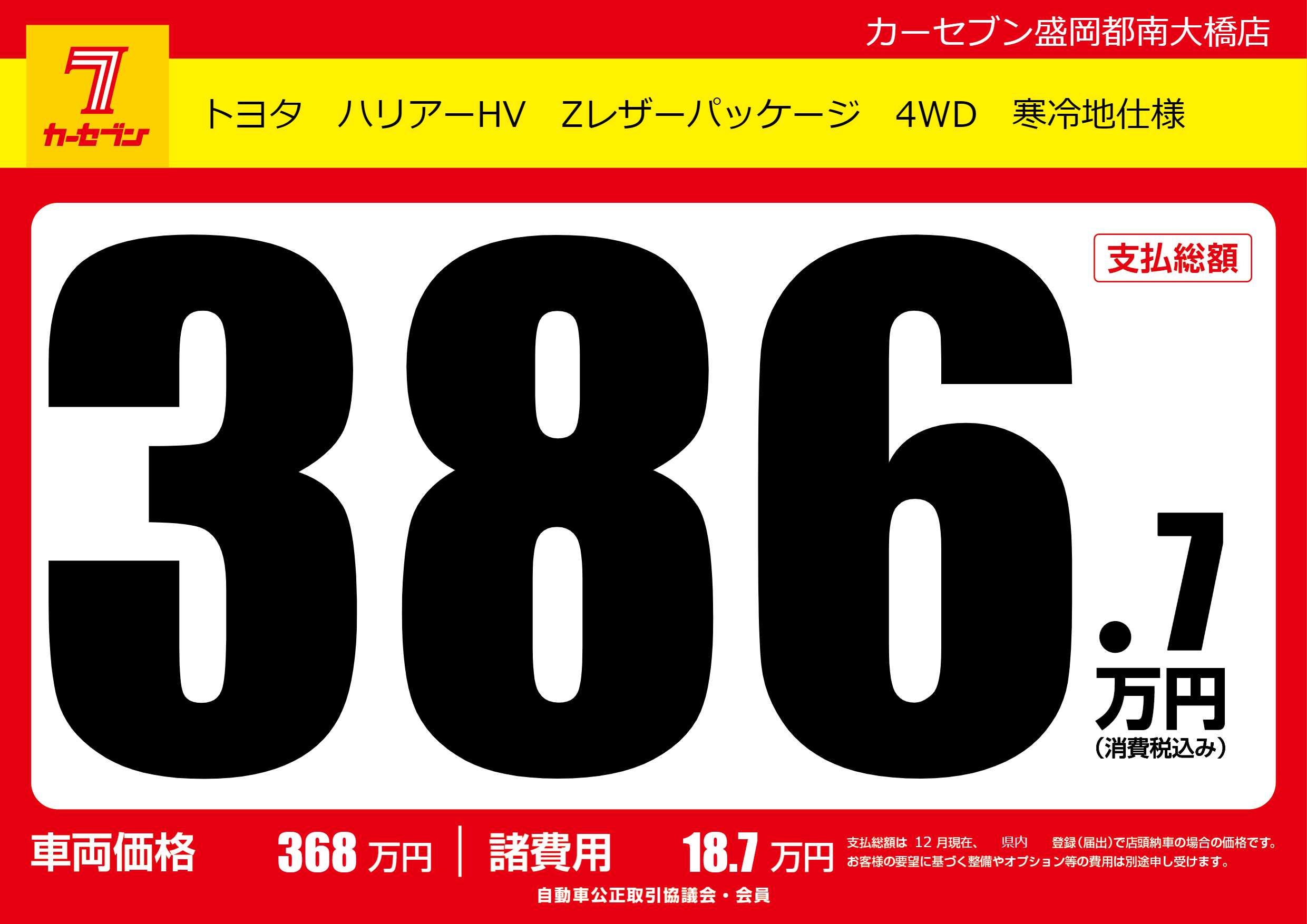 トヨタ ハリアーHV Zレザーパッケージ 4WD 寒冷地仕様
