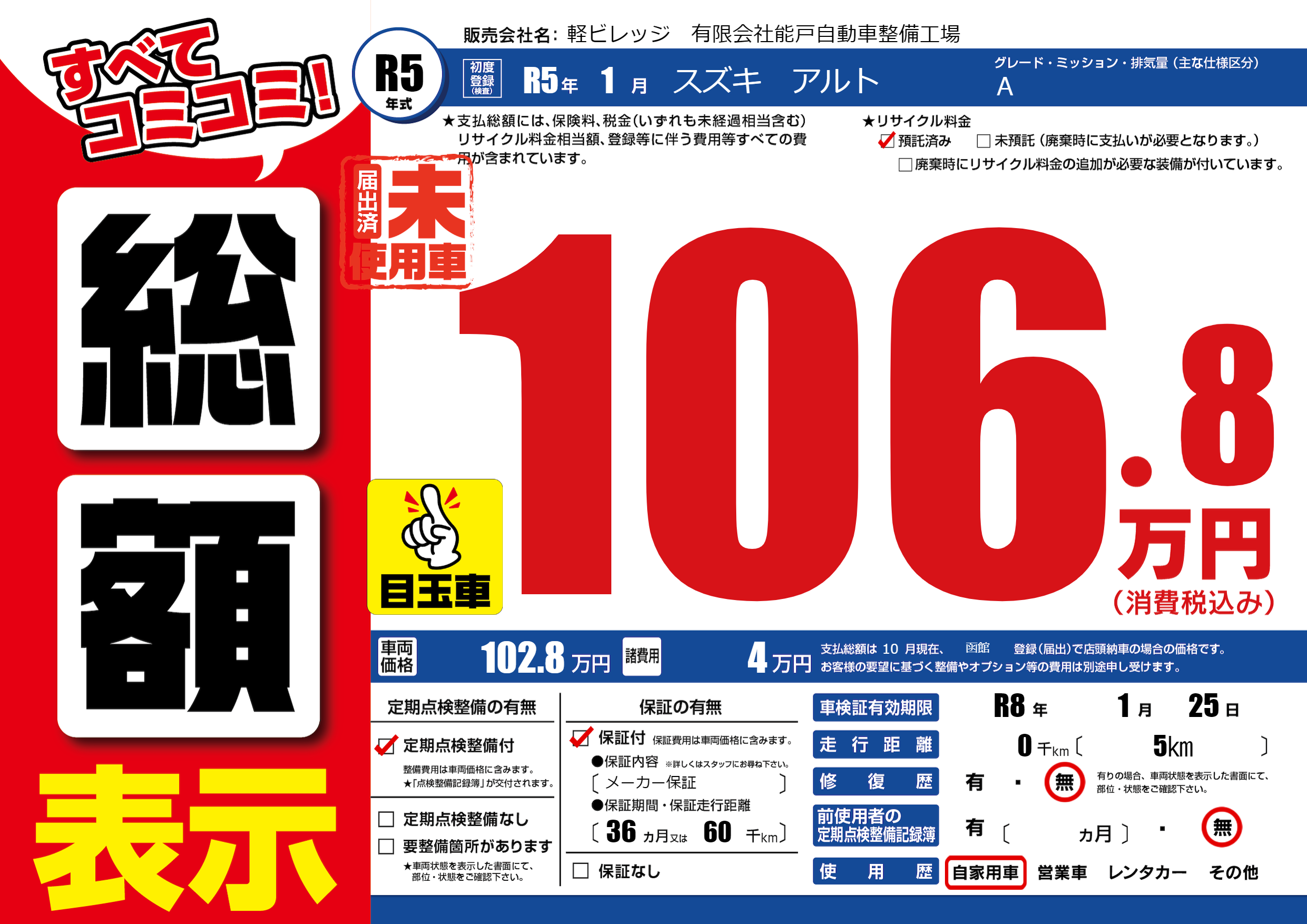 なし | 車検制限 | R8年1月25月 |
