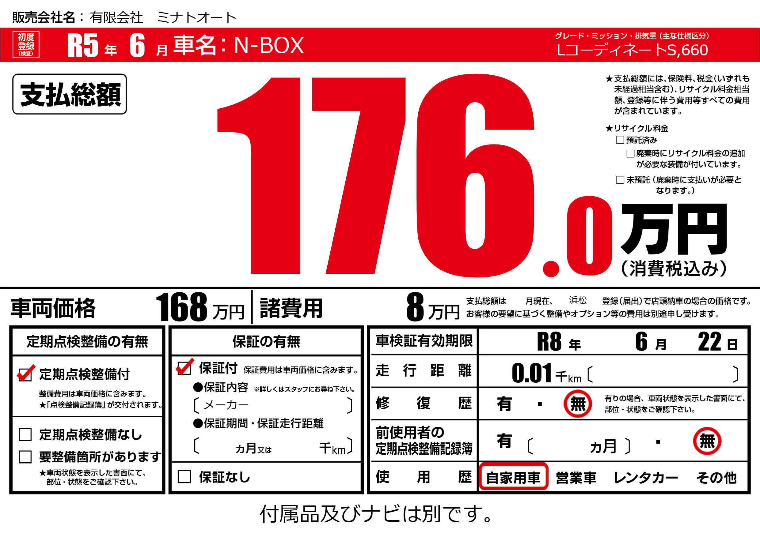 なし | 車検制限 | R8年6月22月 |
