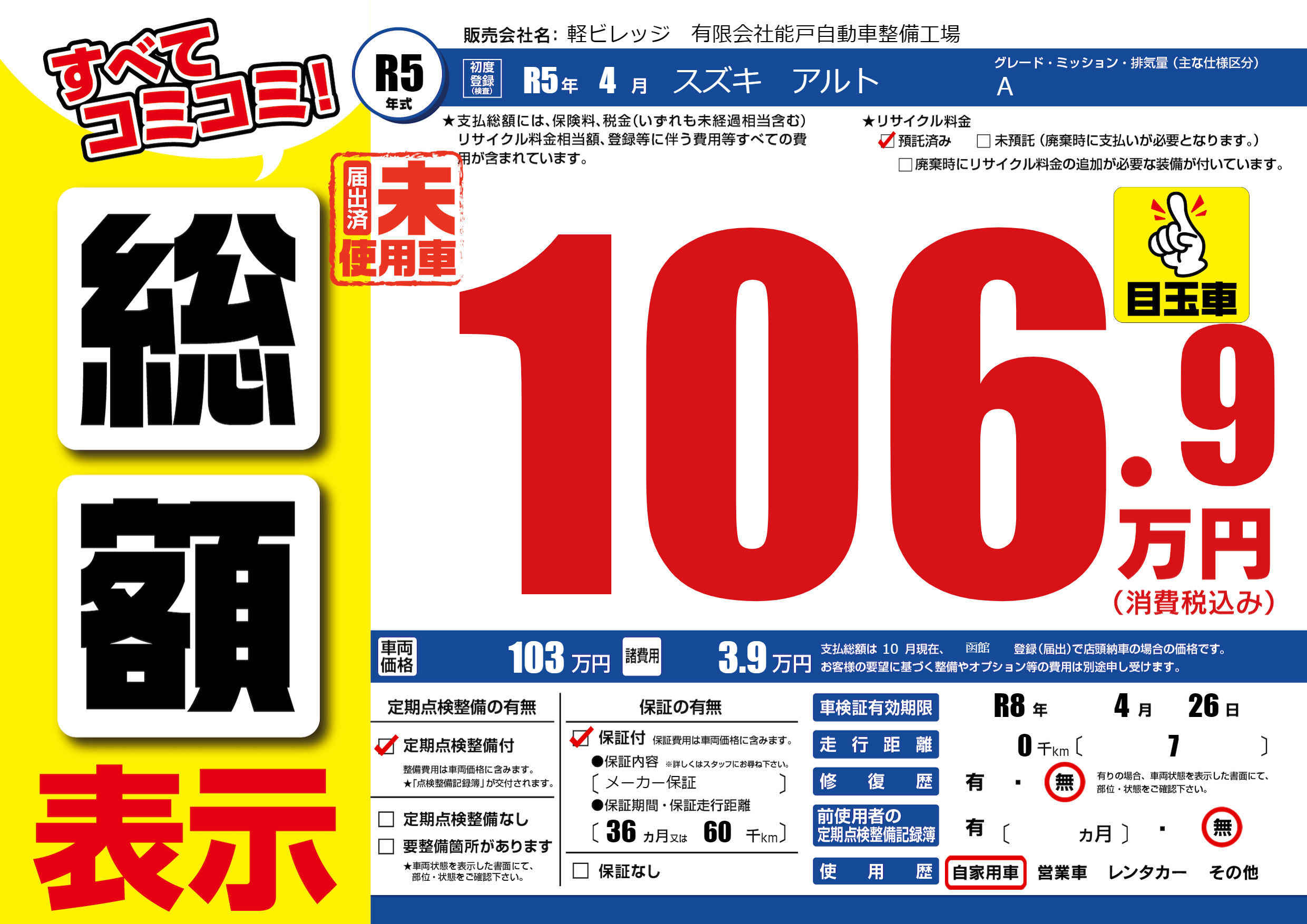 | 走行キロ | - | 初年度登録 | R5年4月 |