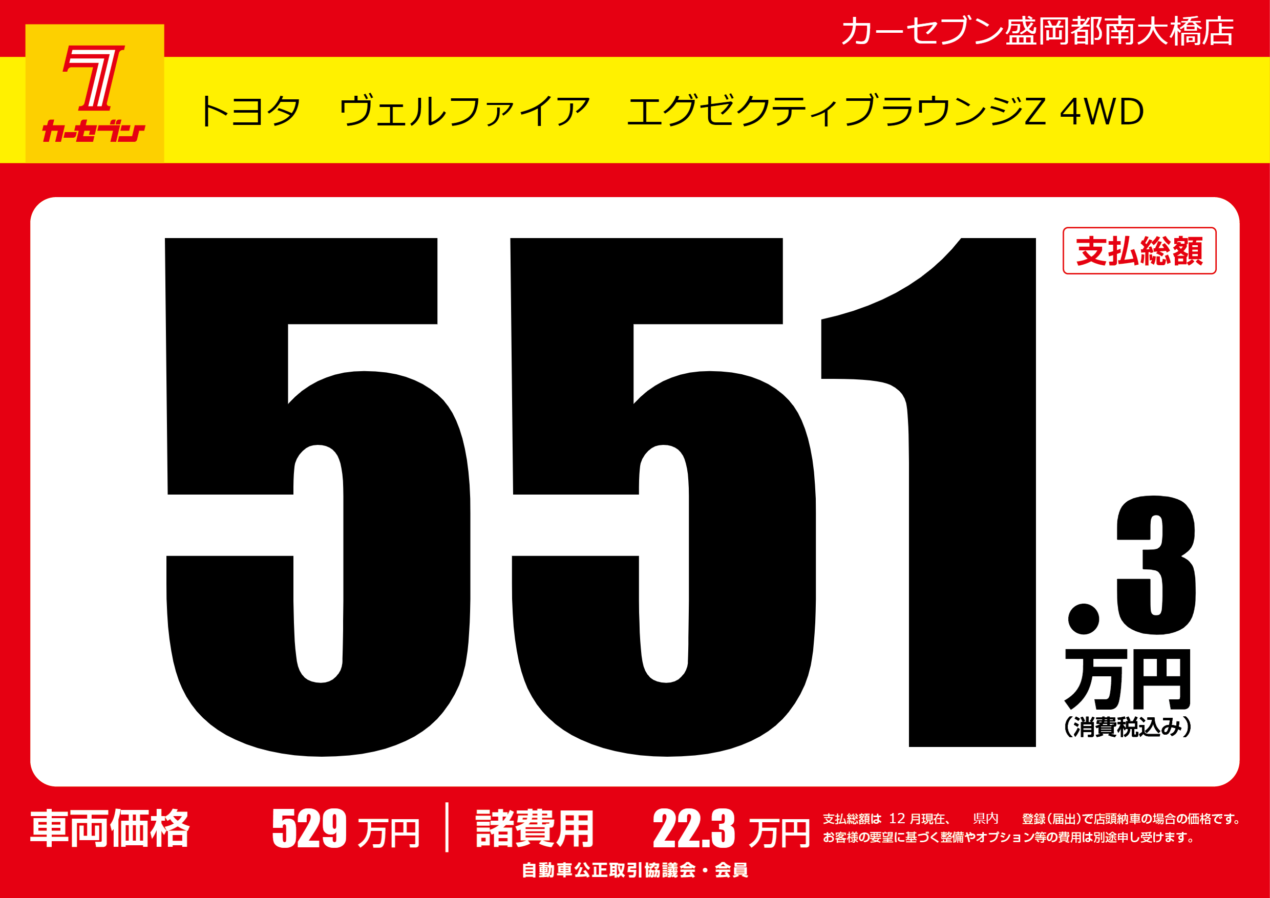 | 車名 | トヨタ ヴェルファイア エグゼクティブラウンジZ 4WD | グレード ミッション 排気量 |