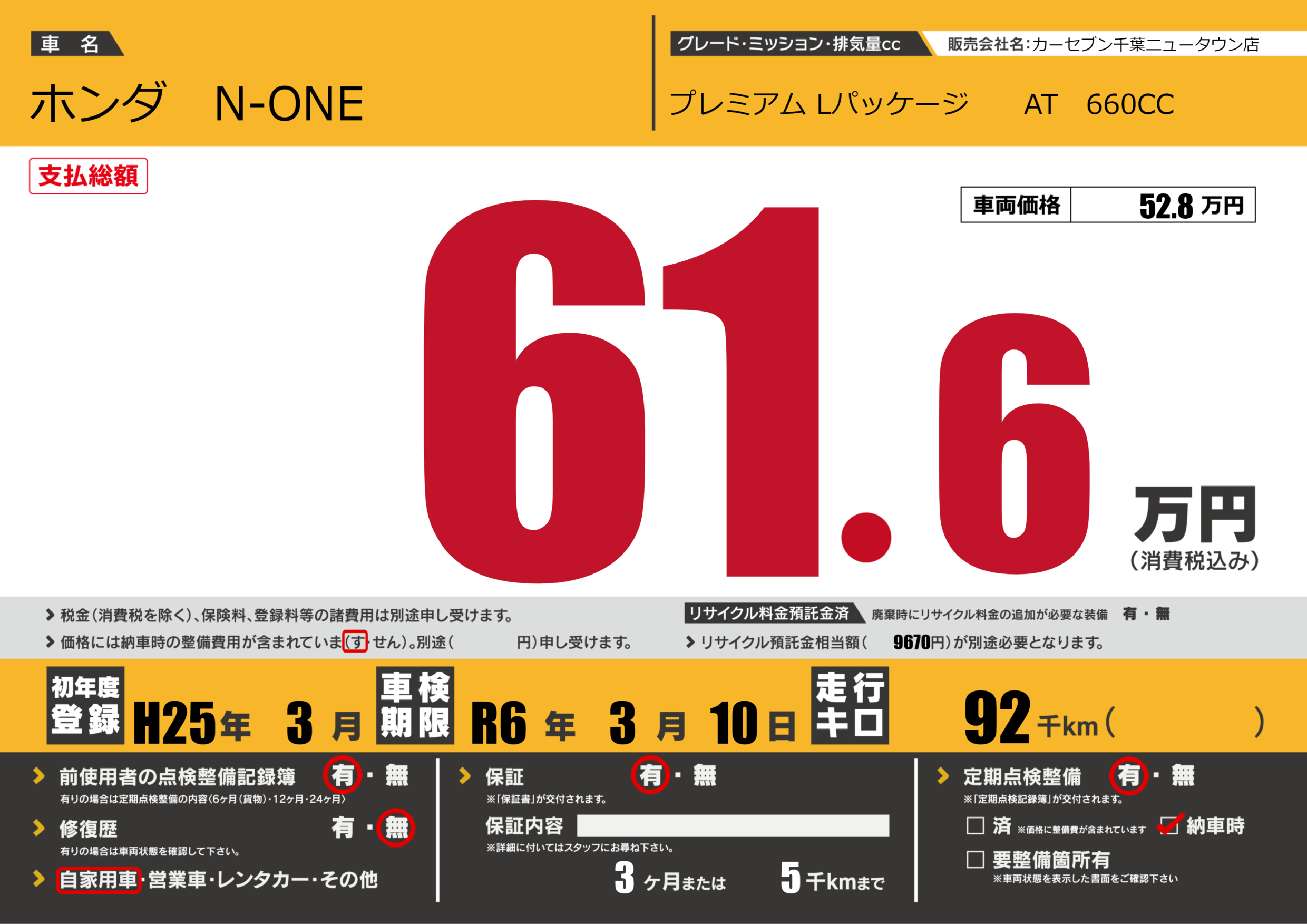 | 定期点検整備 | 定期点検整備あり 納車時あり | ||