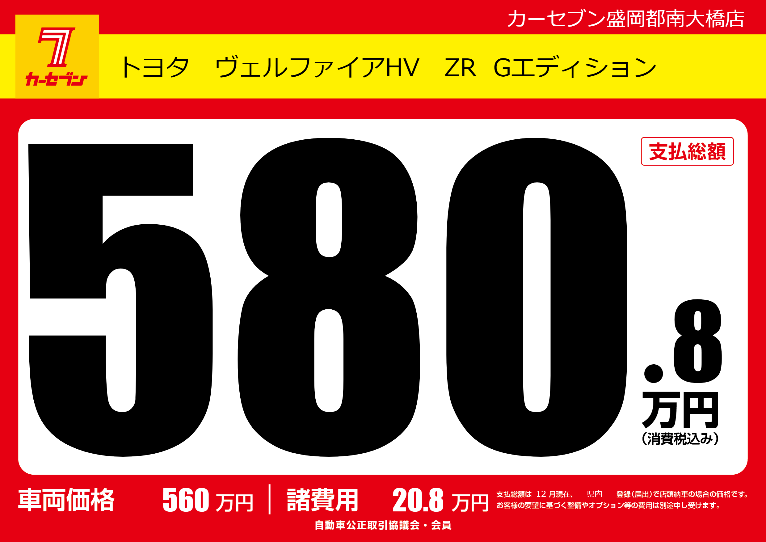 | 車名 | トヨタ ヴェルファイアHV ZR Gエディション | グレード ミッション 排気量 |