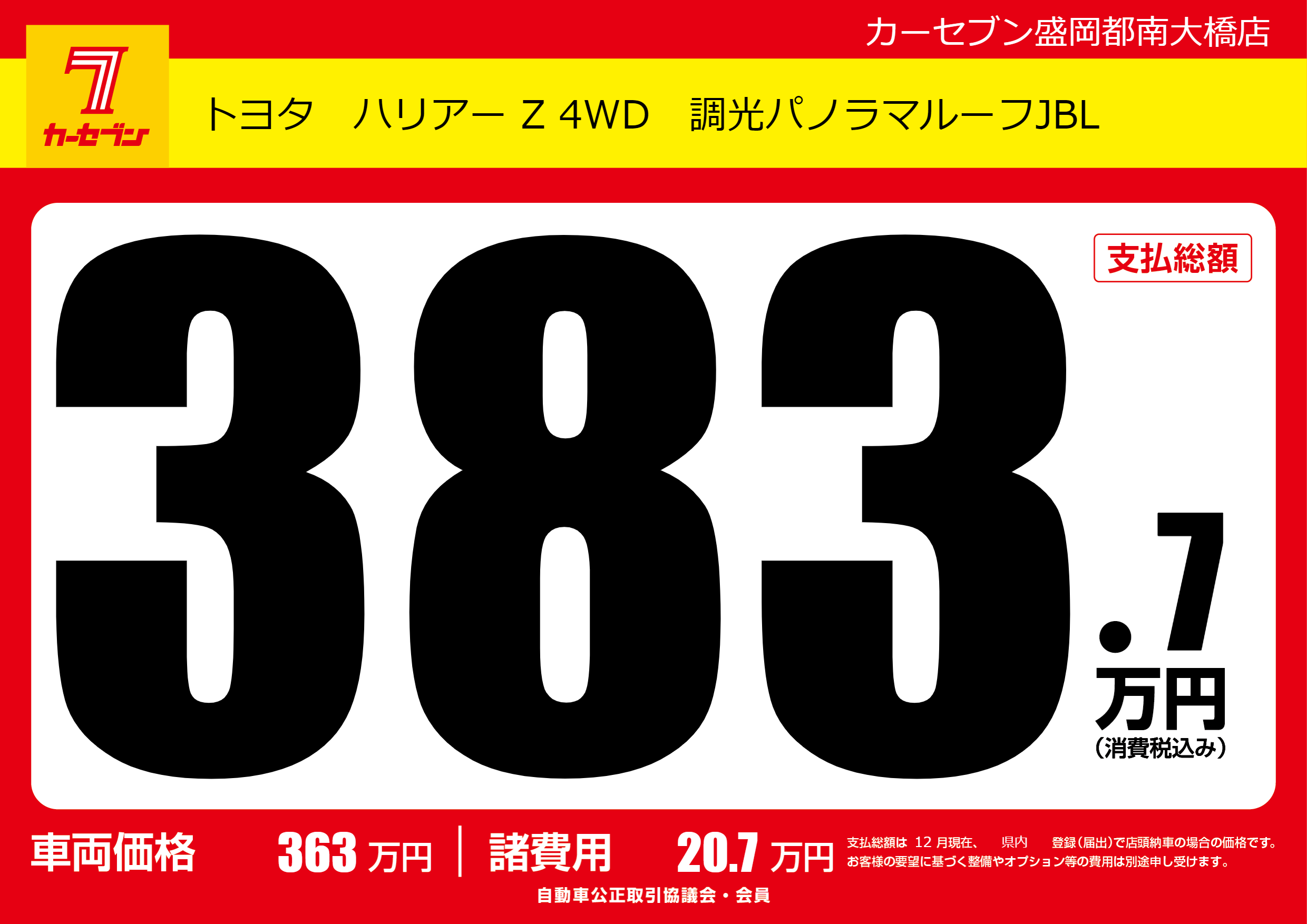 トヨタ ハリアー Z 4WD 調光パノラマルーフJBL