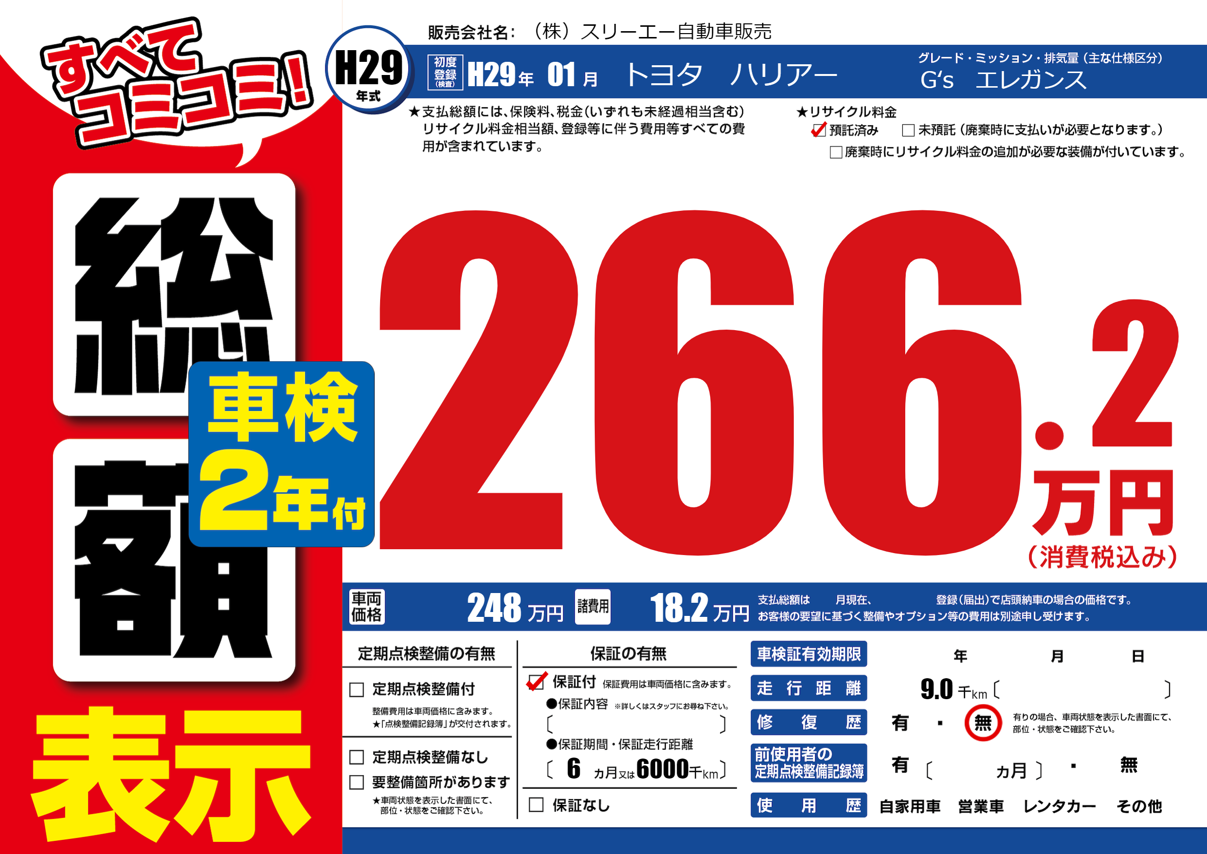 保証付き 保証内容(---) 6ヶ月または(6000)千kmまで |