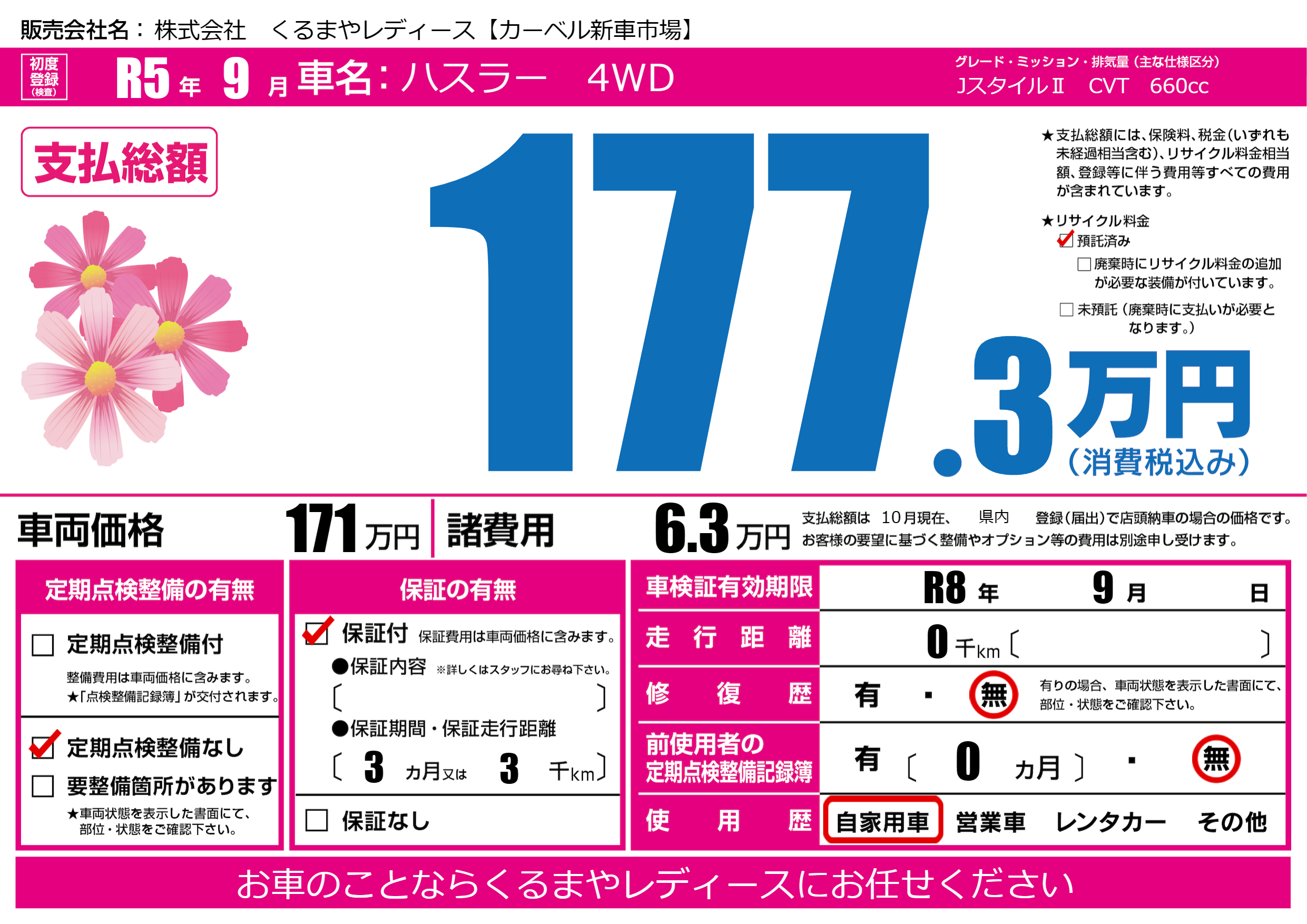 なし | 車検制限 | R8年9月---月 |