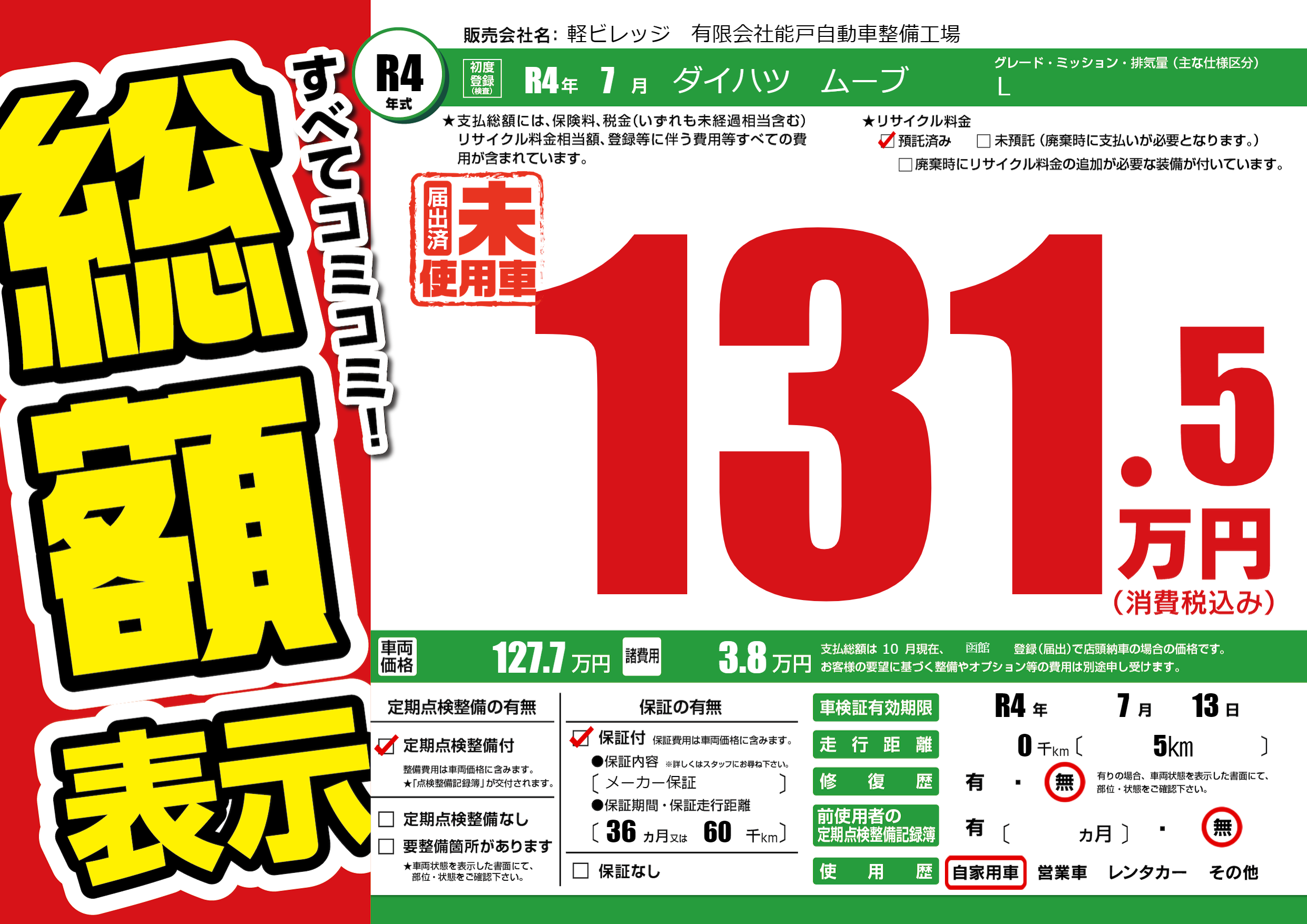なし | 車検制限 | R4年7月13月 |