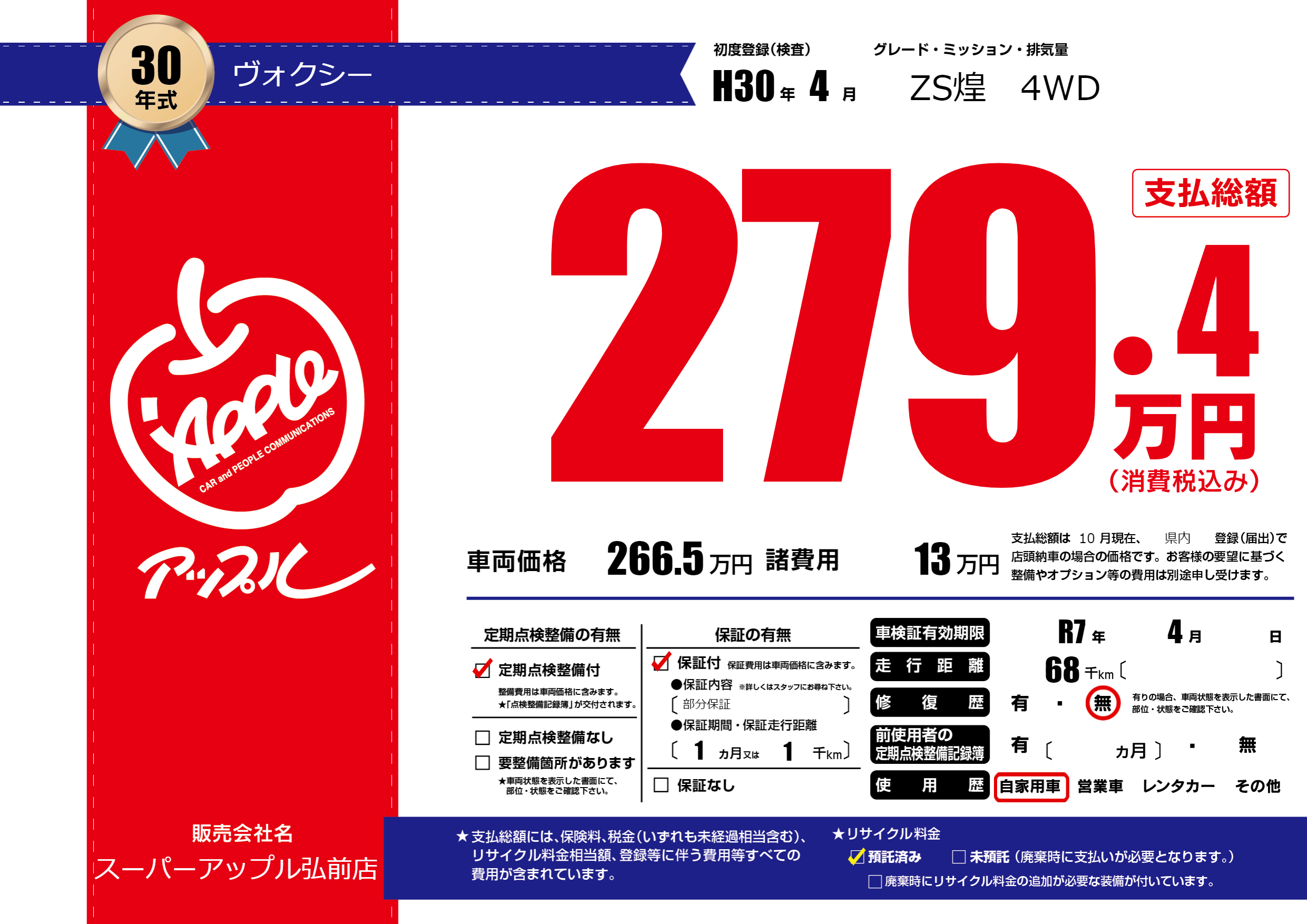 | 走行キロ | 6.8万km | 初年度登録 | H30年4月 |
