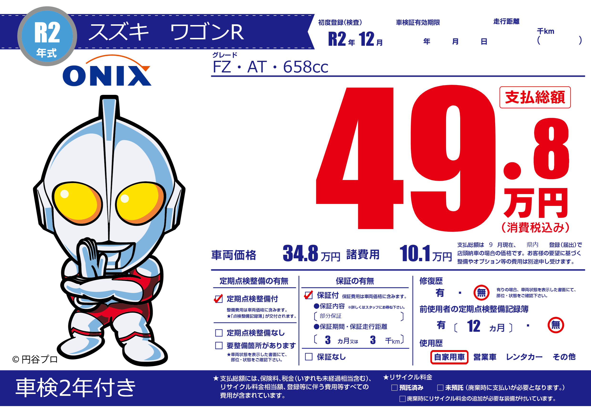 | 走行キロ | - | 初年度登録 | R2年12月 |
