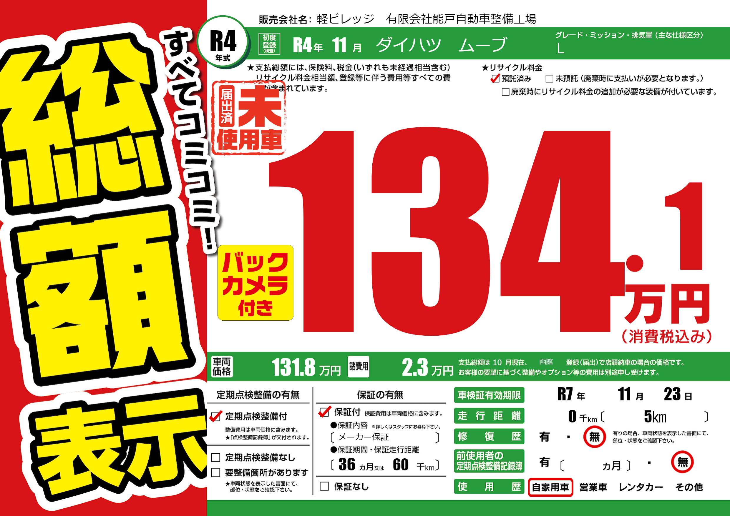 | 走行キロ | - | 初年度登録 | R4年11月 |