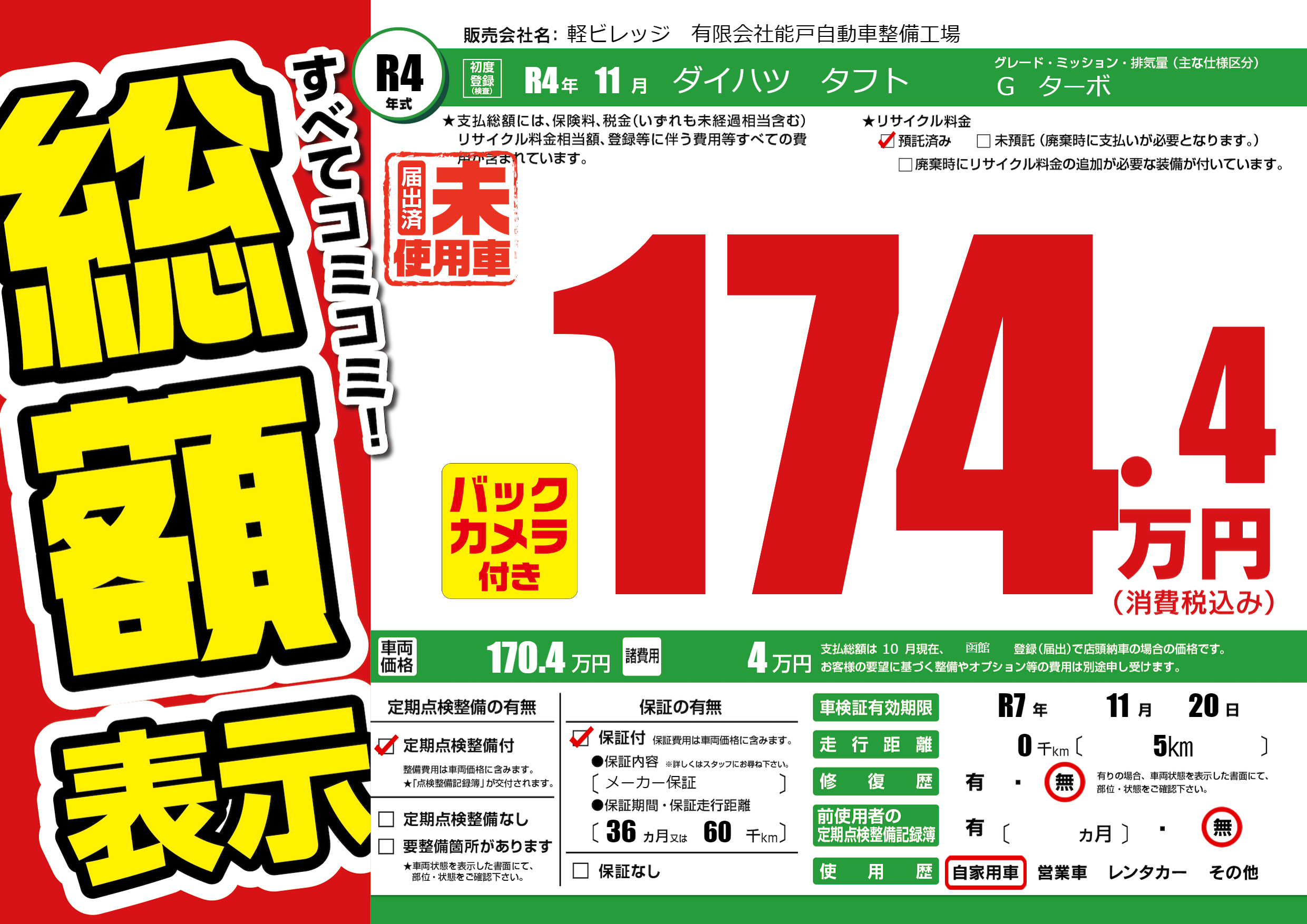 | 走行キロ | - | 初年度登録 | R4年11月 |