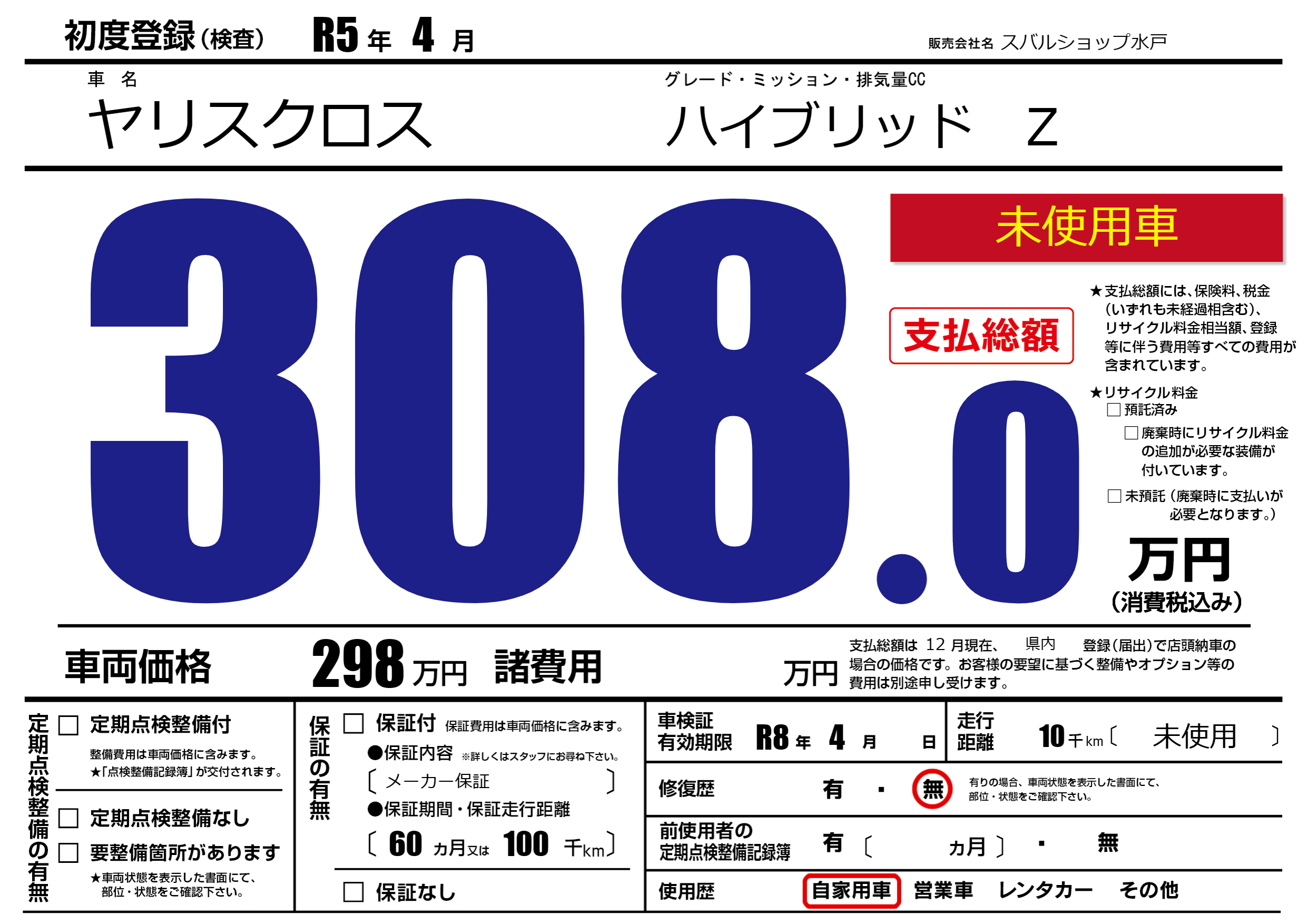 | 車名 | ヤリスクロス | グレード ミッション 排気量 |