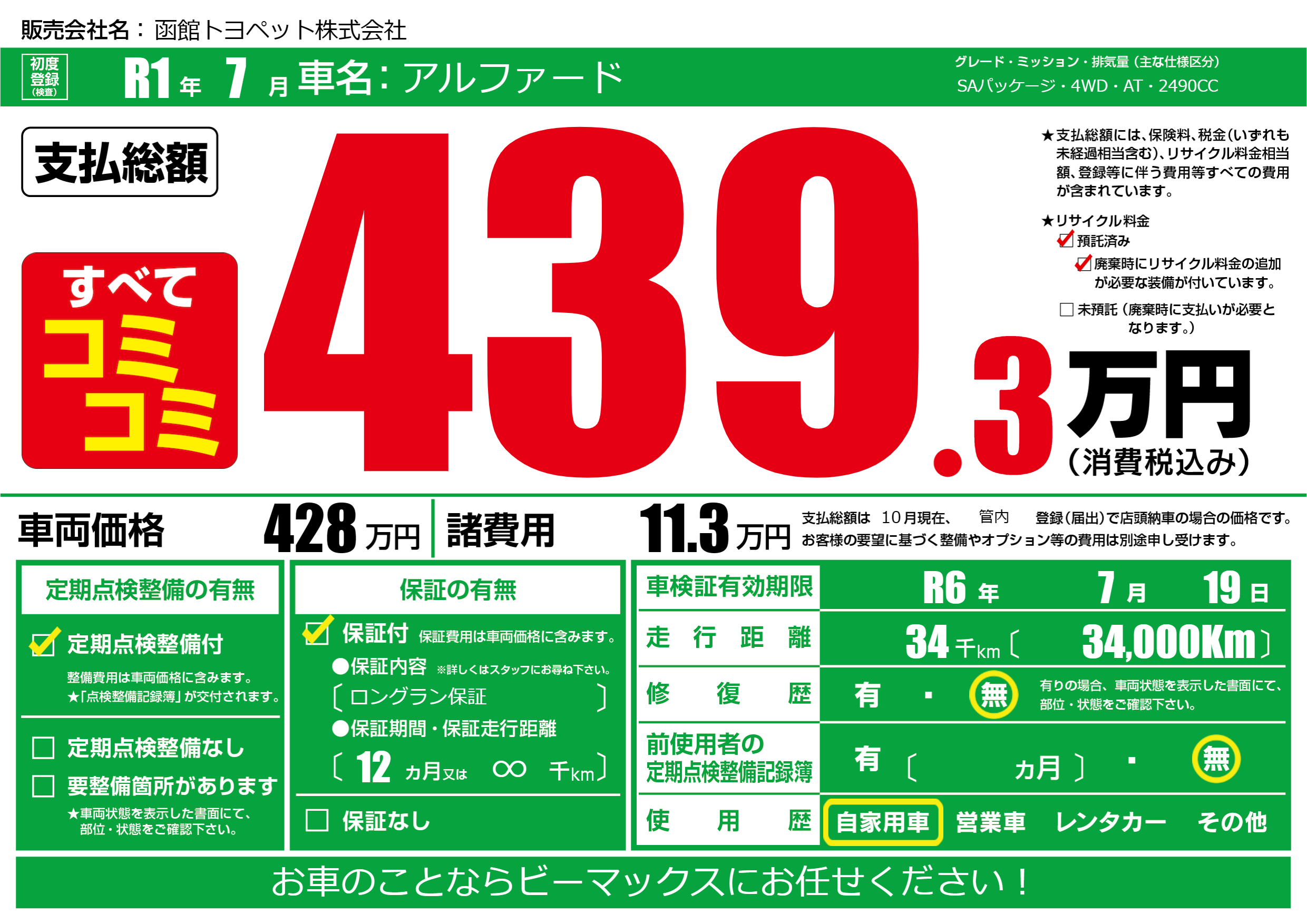 | 走行キロ | 3.4万km | ||