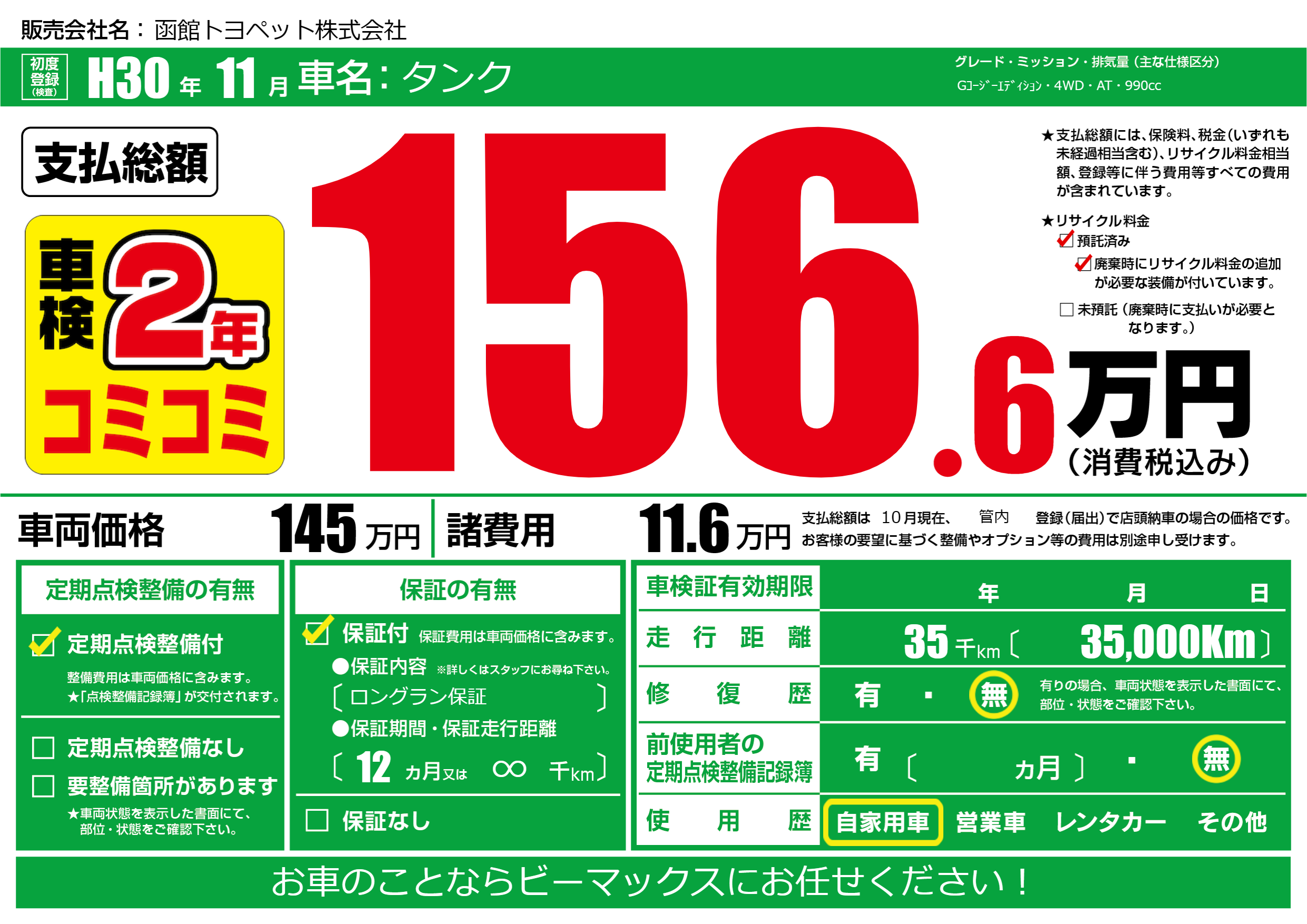 | 走行キロ | 3.5万km | ||