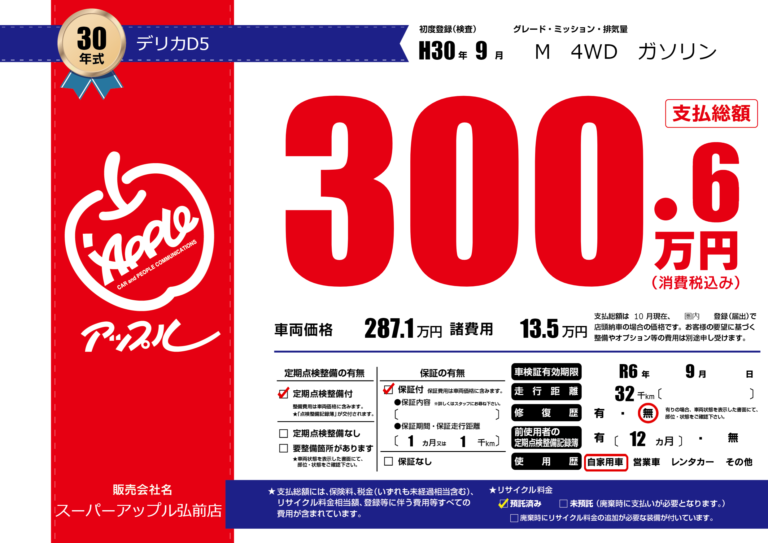 | 車検制限 | R6年 9月 - 日 | ||
