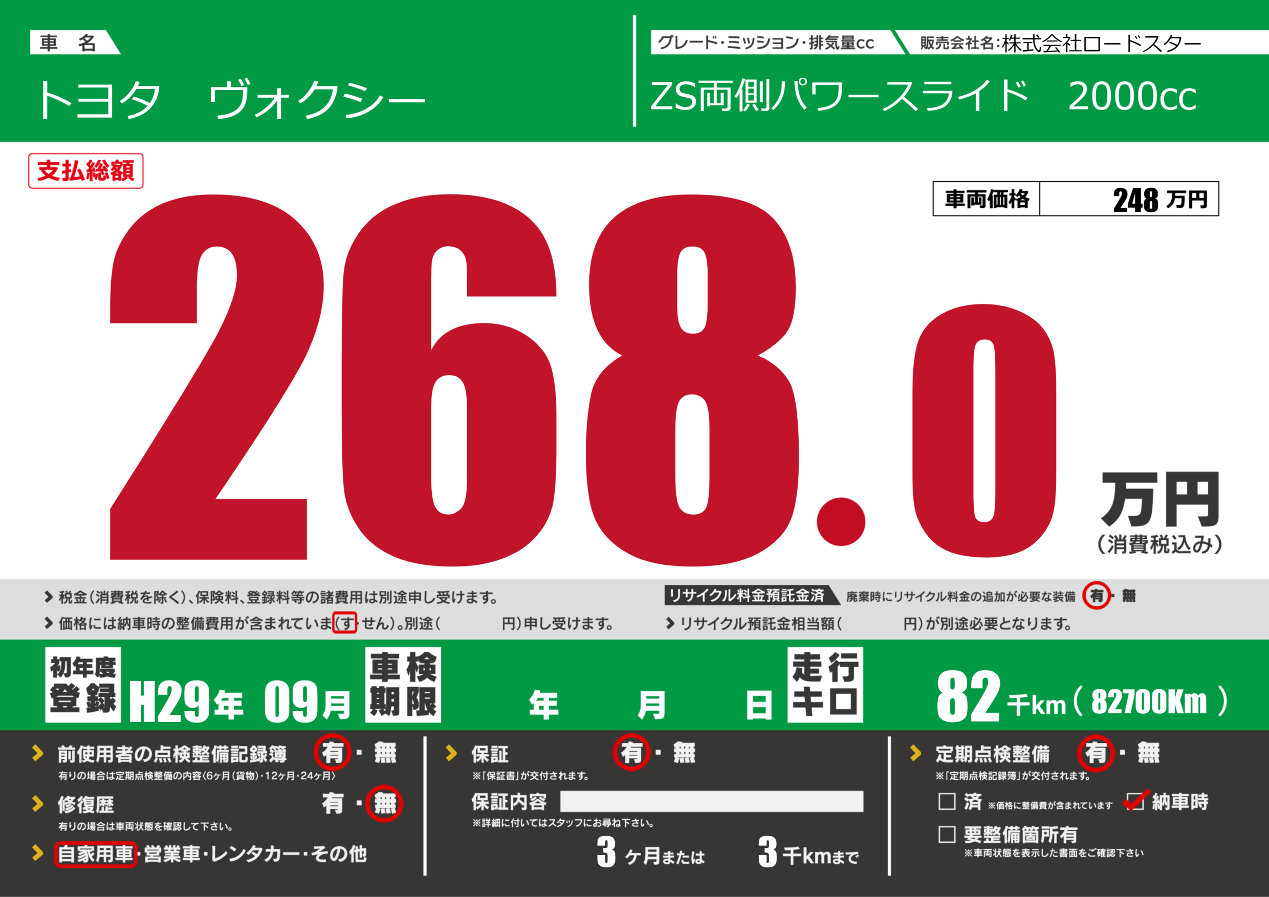 | 定期点検整備 | 定期点検整備あり 納車時あり | ||