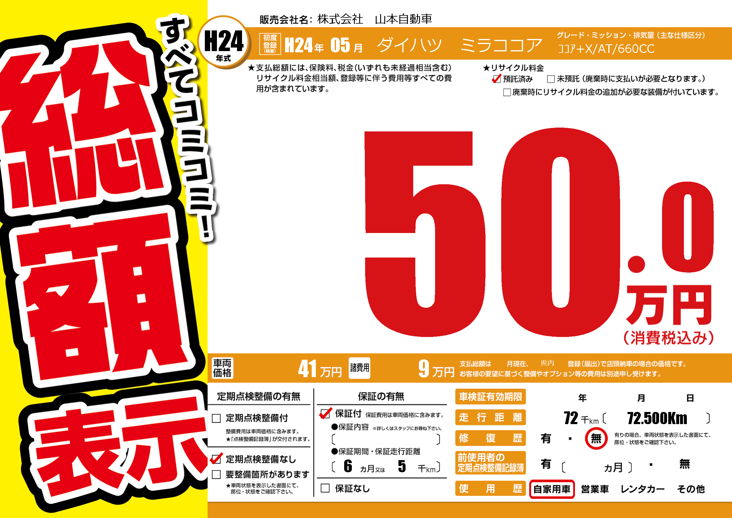 | 車名 | ダイハツ ミラココア | グレード ミッション 排気量 |